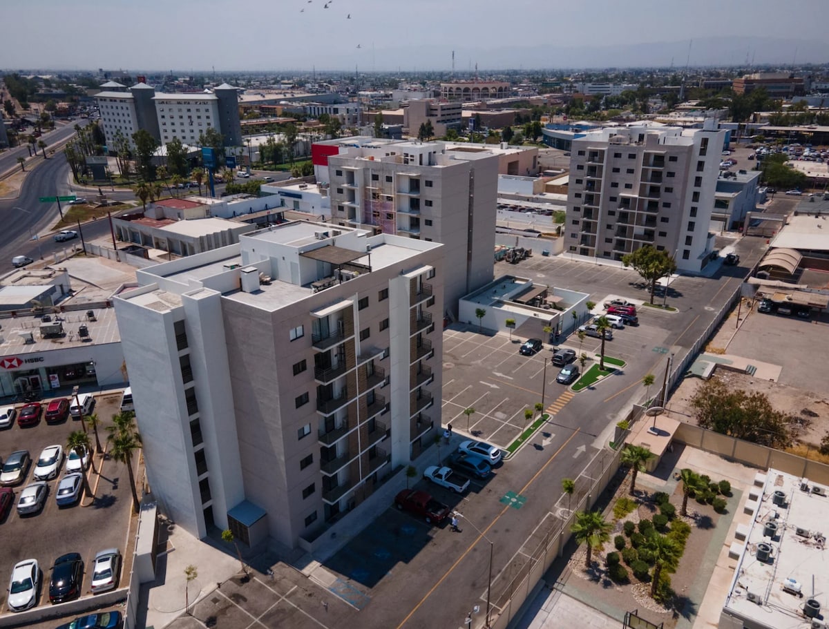 - Μοντέρνο διαμέρισμα 2 υπνοδωματίων στον 5ο όροφο, λίγα λεπτά από την Plaza Cachanilla. - Πρόσβαση με ασανσέρ για εύκολη ευκολία. - Check-in χωρίς παρουσία οικοδεσπότη με έξυπνο πληκτρολόγιο. - Στάθμευση για 2 οχήματα. - Κλιματισμός σε όλο το διαμέρισμα. - Πλήρως εξοπλισμένη κουζίνα, τραπεζαρία και χώρος πλυντηρίου. - Έξυπνη τηλεόραση 75" 4K με Netflix, Disney+, Amazon Prime και HBO - Κοινόχρηστη βεράντα στον 9ο όροφο με επιχειρηματικό κέντρο, ψησταριές και σαλόνι. - Πρόσβαση σε κοινόχρηστους χώρους: πισίνα, γυμναστήριο και αίθουσα παιχνιδιών. - Εκδίδουμε τιμολόγια MX (Facturamos)