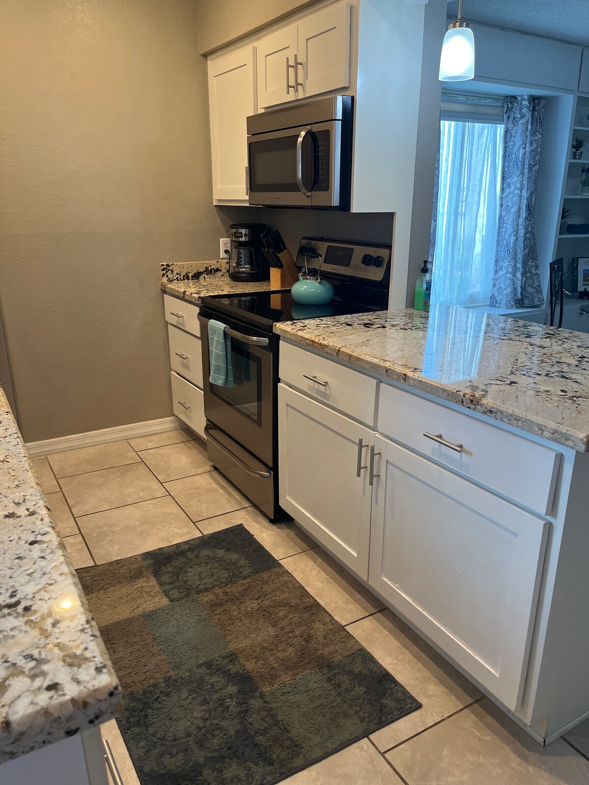 This is a single-story townhouse is centrally located in Yuma, with beautiful views and everything you need to make your stay comfortable. This Clean, comfortable and modern two-bedroom, two-bathroom townhouse sleeps six. It includes a fully-equipped kitchen with new appliances and granite counter tops. The living room comes with a queen sofa sleeper. A private furnished patio comes with a BBQ grill. There is a community pool just outside the front door.