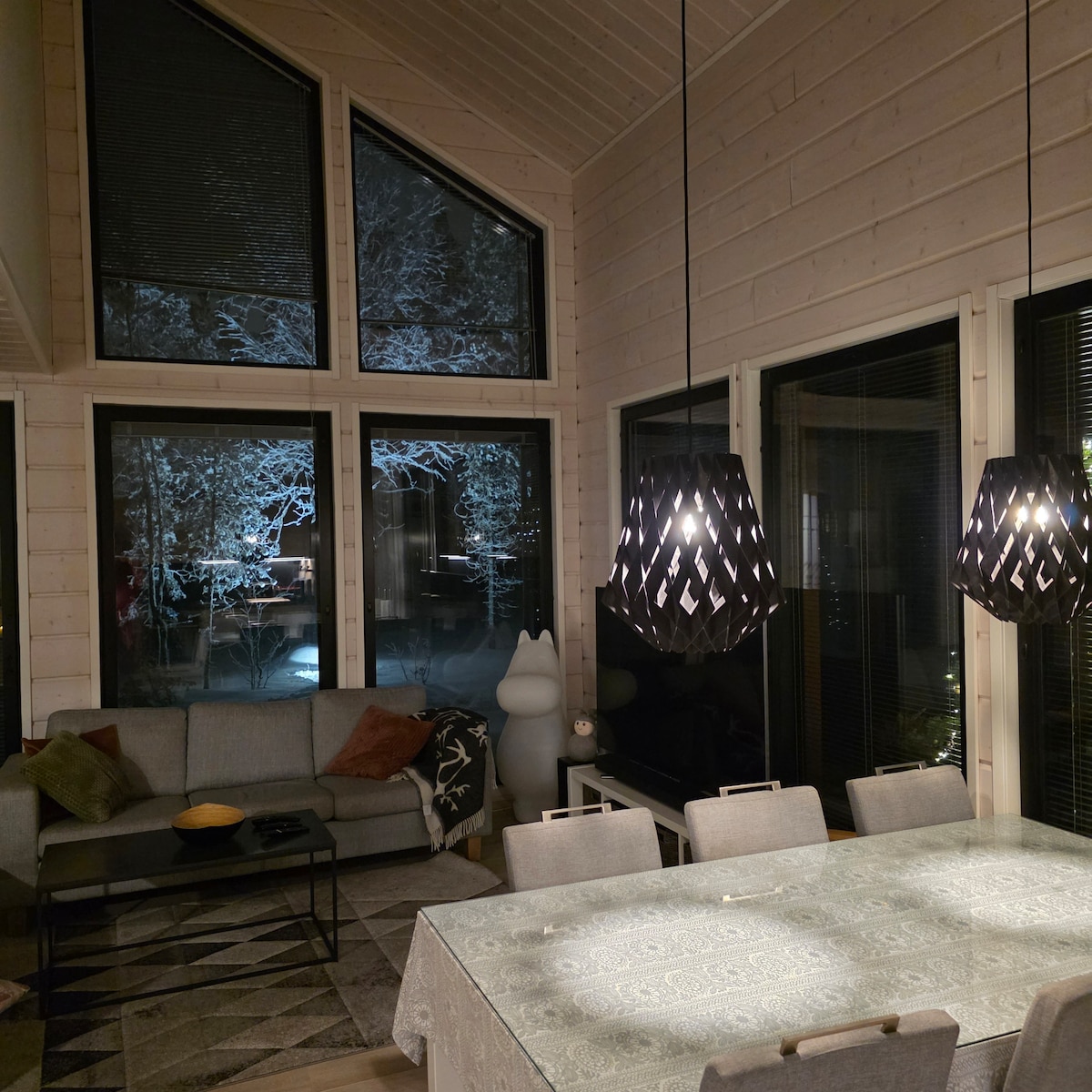 Αυτός ο συγκεκριμένος χώρος βρίσκεται κοντά σε όλα, γεγονός που διευκολύνει τον προγραμματισμό της επίσκεψης. Κοντά σε όλα, αλλά και πάλι στην ησυχία σας. Η ατμόσφαιρα στο σαλόνι δημιουργείται από το τζάκι και τα μεγάλα παράθυρα, από τα οποία ανοίγει η θέα σε όμορφα φυσικά τοπία. Πλήρως εξοπλισμένη κουζίνα με νησί και μεγάλο τραπέζι (10 άτομα). Μια χαλαρωτική εμπειρία σάουά δημιουργείται από τα πατάρια από κορμούς, τους τοίχους από κορμούς και την εξωτερική μπανιέρα Novitek Ylläs (9 άτομα). Η τιμή περιλαμβάνει 2 εισιτήρια για το τελεφερίκ και τη χρήση της εξωτερικής πισίνας.