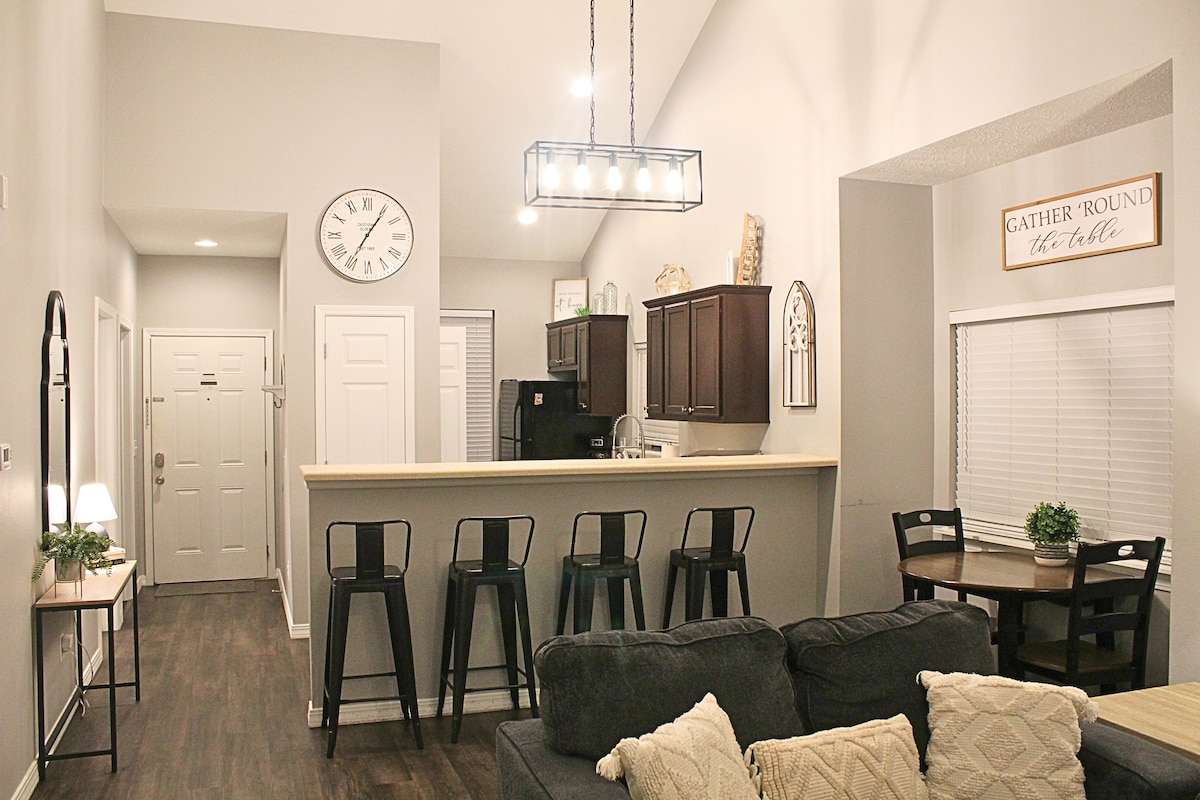 Όμορφο διαμέρισμα 2 υπνοδωματίων/2 μπάνιων δίπλα στη λίμνη! Απολαύστε τον καφέ σας στην πίσω βεράντα με θέα στη λίμνη Τέιμπλ Ροκ. Αυτό είναι το πλησιέστερο συγκρότημα στο Silver Dollar City, επιτρέποντάς σας να αποφύγετε την κίνηση και τις μεγάλες ουρές. Μπορείτε να δείτε και να ακούσετε τα τρενάκια από τη μπροστινή βεράντα! Βολευτείτε σαν στο σπίτι σας στο πλήρως εξοπλισμένο διαμέρισμά μας. Βγείτε στην πόλη ή απλώς απολαύστε μια ήσυχη βραδιά στο κατάλυμα. Η πισίνα βρίσκεται στην ιδιοκτησία και μπορείτε επίσης να κατεβείτε με τα πόδια στη λίμνη. Επιτρέψτε μας να μοιραστούμε το υπέροχο διαμέρισμά μας μαζί σας!