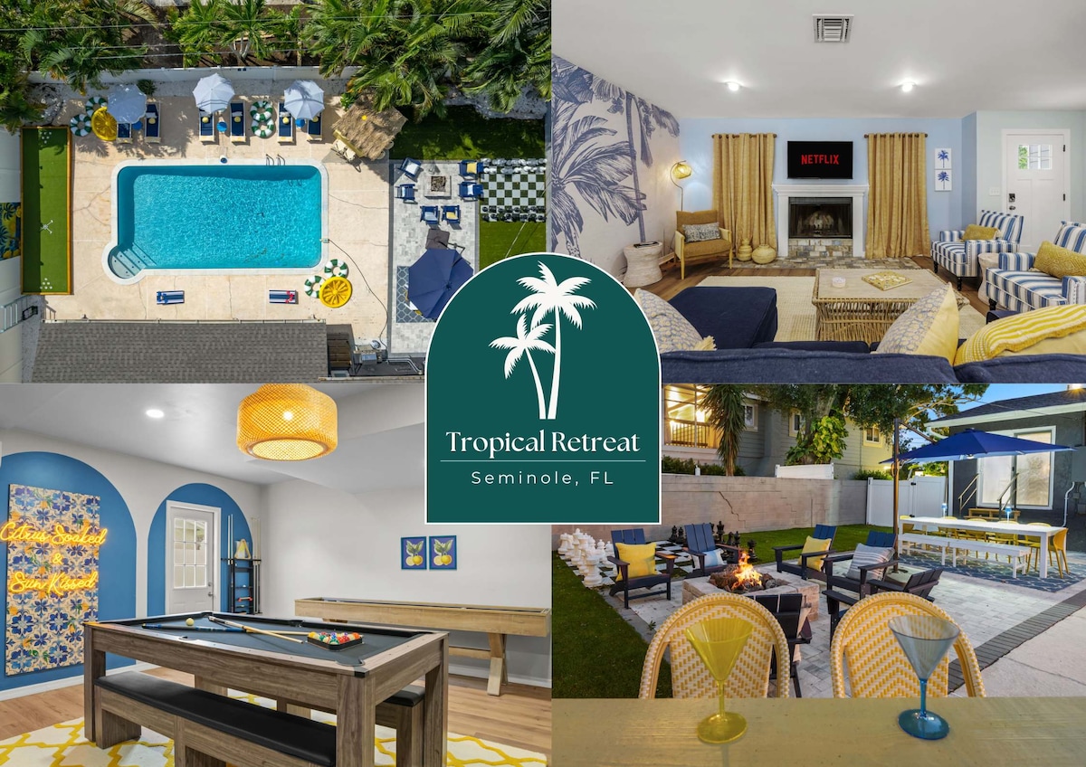 Καλώς ήρθατε στο The Merry Mint! Μια οικογενειακή όαση 2/1 φιλική προς τα κατοικίδια που βρίσκεται 4 μίλια από την #1 παραλία στην Αμερική, το Clearwater Αυτή η πολύχρωμη και ιδιόμορφη ιδιοκτησία απέχει μόλις λίγα λεπτά από παντοπωλεία, εστιατόρια 5 αστέρων και κάθε ανέσεις. Σε μικρή απόσταση με το αυτοκίνητο από την παραλία! Ή μείνετε μέσα και απολαύστε: Πισίνα ★ 24x12 με πολύχρωμο φως LED. ★ 34X18 Βεράντα πισίνας ★ Ξαπλώστρες ★ 16x20 Ψησταριά Τζάκι εξωτερικού★ χώρου με σχάρα ψησίματος Παιχνίδια ★ αυλής (corn hole, jenga, connect four κ.λπ.) ★ Ψησταριά μπάρμπεκιου ★ Φωτάκια