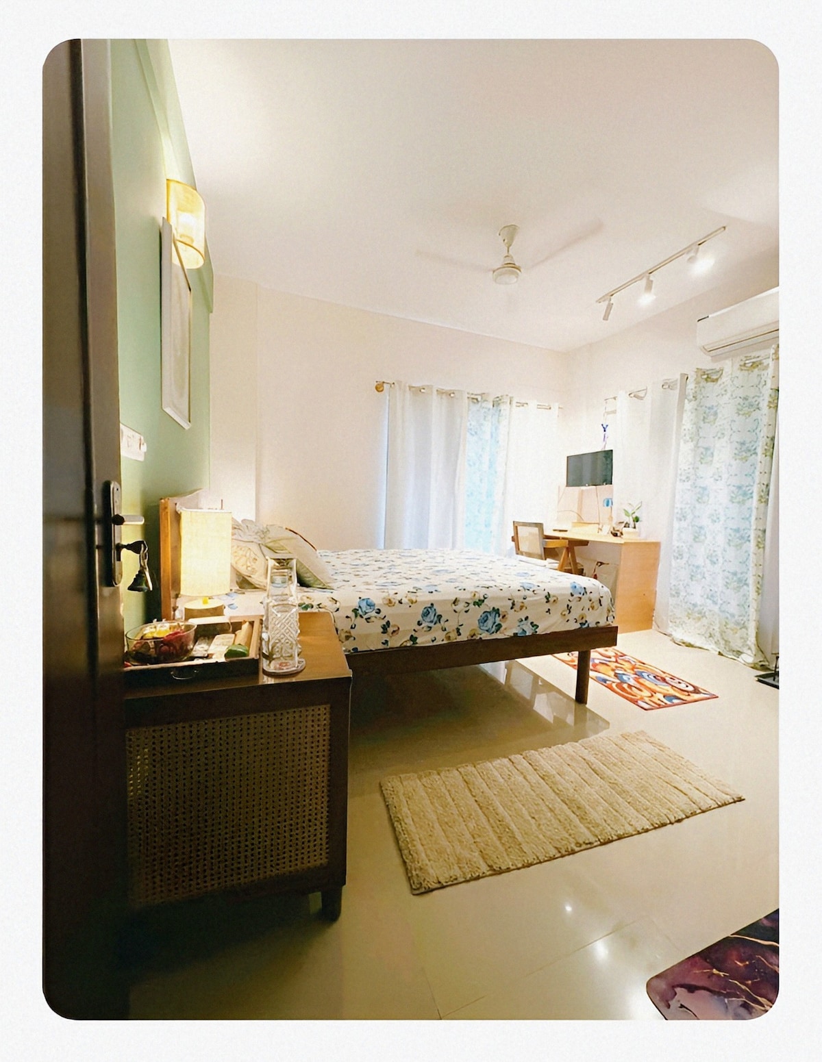 Ένα ευρύχωρο στούντιο 1 υπνοδωματίου στην καρδιά του Indiranagar με ιδιωτικό μπαλκόνι, φυτά σε γλάστρες, ένα δέντρο μάνγκο και μια κουζίνα. Προσεγμένη διακόσμηση - μίνιμαλ, οικείο στιλ - γεμάτο φυσικό φως και ήρεμη γοητεία. 1 λεπτό με τα πόδια από το μετρό και μερικά από τα καλύτερα καφέ της Μπανγκαλόρ. Μια επέκταση του ήρεμου τρόπου ζωής μας — ιδανικό για σόλο ταξιδιώτες, ζευγάρια και επαγγελματικά ταξίδια. Πουλιά και πεταλούδες συχνά περνούν για να πούνε ένα γεια. Περιλαμβάνει Υπέρδιπλο κρεβάτι Wi-Fi + χώρος εργασίας Μοντέρνο μπάνιο Μικρή κουζίνα μόνο με τα απαραίτητα