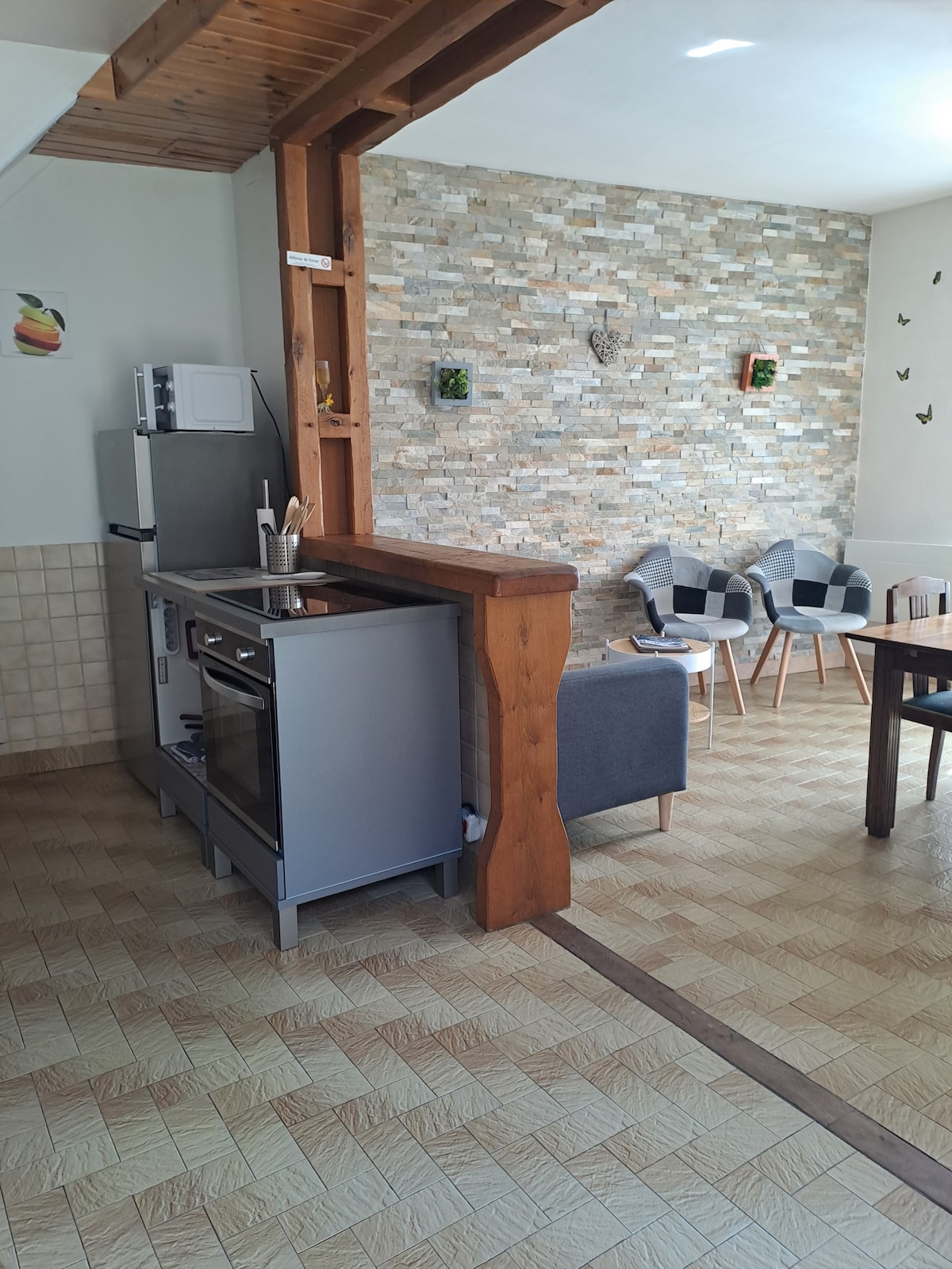 Ανακαινισμένος παλιός οικογενειακός αχυρώνας, στο ισόγειο θα βρείτε Ένα μεγάλο σαλόνι-τραπεζαρία με όμορφους πέτρινους τοίχους, τζάκι Άμεση πρόσβαση σε βεράντα για τα καλοκαιρινά βράδια. Μια κουζίνα με ψυγείο, κουζίνα αερίου, νεροχύτη και πλυντήριο πιάτων Όλα όσα χρειάζεστε για να μαγειρέψετε Ένα πλυσταριό με πλυντήριο και στεγνωτήριο Μια γωνιά με τουαλέτα και αλλαξιέρα για μωρά στον 1ο όροφο 5 υπνοδωμάτια με μπάνιο και τουαλέτα ΕΞΩΤΕΡΙΚΟΣ ΧΩΡΟΣ ΓΙΑ ΠΕΤΑΝΚ
