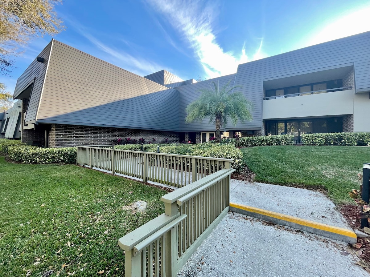 Σουίτα διαμερίσματος 1ου ορόφου στο Innisbrook. 20-25 λεπτά από την Τάμπα, το Σεντ Πιτ και την παραλία Κλίαργουότερ. 10 λεπτά από το νησί Χάνιμουν και το κέντρο του Ντούνεντιν. 17 μίλια από το αεροδρόμιο της Τάμπα, 15 μίλια από το αεροδρόμιο του Σεντ Πιτ και 15 μίλια από την προβλήτα 60, στην παραλία Κλίαργουότερ. **Μόνο για καταλύματα** Οι παροχές του Innisbrook Resort (γκολφ, τένις, πισίνα) δεν περιλαμβάνονται σε καμία καταχώρηση στην Airbnb ή VRBO. Σουίτα 875 τετραγωνικών ποδιών. Υπέρδιπλο κρεβάτι και τηλεόραση 32" στο υπνοδωμάτιο 1. Μεγάλο διπλό κρεβάτι, καναπές-κρεβάτι και τηλεόραση 55" σε άλλο δωμάτιο. Πλήρως εξοπλισμένη κουζίνα και πλήρως εξοπλισμένο μπάνιο