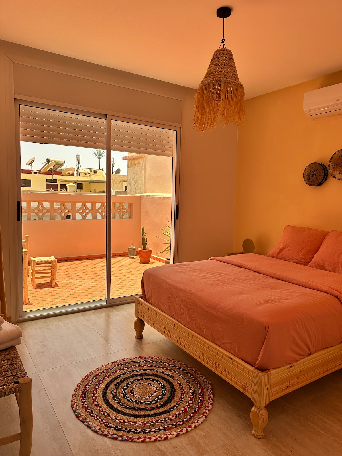 όμορφο κλιματιζόμενο διαμέρισμα με ιδιωτική βεράντα στο κέντρο του Αγαντίρ που μπορεί να φιλοξενήσει έως και 4 άτομα. βρίσκεται στο κέντρο του Αγκαντίρ, 3 λεπτά από το μεγάλο παζάρι El ahed και 5 λεπτά με το αυτοκίνητο από την παραλία, ιδανική τοποθεσία για να εξερευνήσετε το Αγκαντίρ και τα περίχωρά του. Ιδανικό για: Ζευγάρια που κάνουν ρομαντικό ταξίδι Μεμονωμένους ταξιδιώτες που αναζητούν ένα άνετο κατάλυμα Επαγγελματίες που ταξιδεύουν για επαγγελματικούς λόγους Μη διστάσετε να επικοινωνήσετε μαζί μου για περισσότερες πληροφορίες ή για να κάνετε κράτηση για τη διαμονή σας.