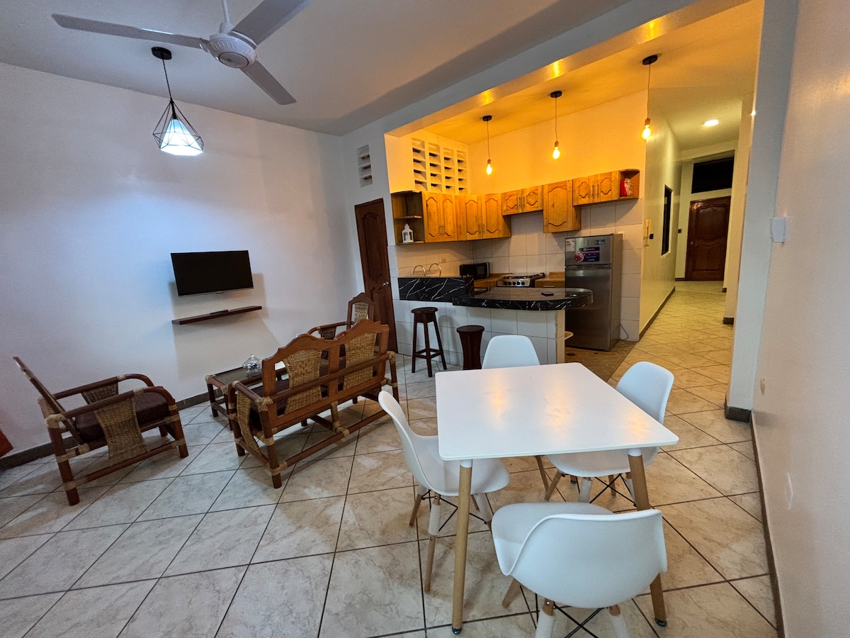 Apartamento independiente, seguro y moderno. Disfruta de una estancia confortable. Su diseño elegante incluye una acogedora sala de estar, cocina totalmente equipada, y las plantas de interior dan un ambiente fresco y relajante. Cuenta con Wi-Fi, televisión y aire acondicionado. Situado en el segundo piso con ingreso privado. La ubicación céntrica facilita el acceso a los puntos de interés de la ciudad. Es ideal para viajeros de negocios o de placer que buscan comodidad y estilo.