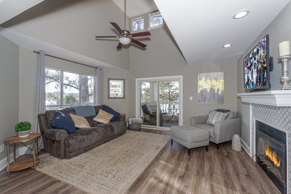Hideaway Harbor – Modern Lakefront Condo w/ Loft, 2 Balconies & Sunset Views Lake Norman | 3 Bedrooms | 2 Bathrooms | Sleeps 6 | Dual Private Balconies 2 Fireplaces | Community Pool | Walk to Onsite Lakefront Dining