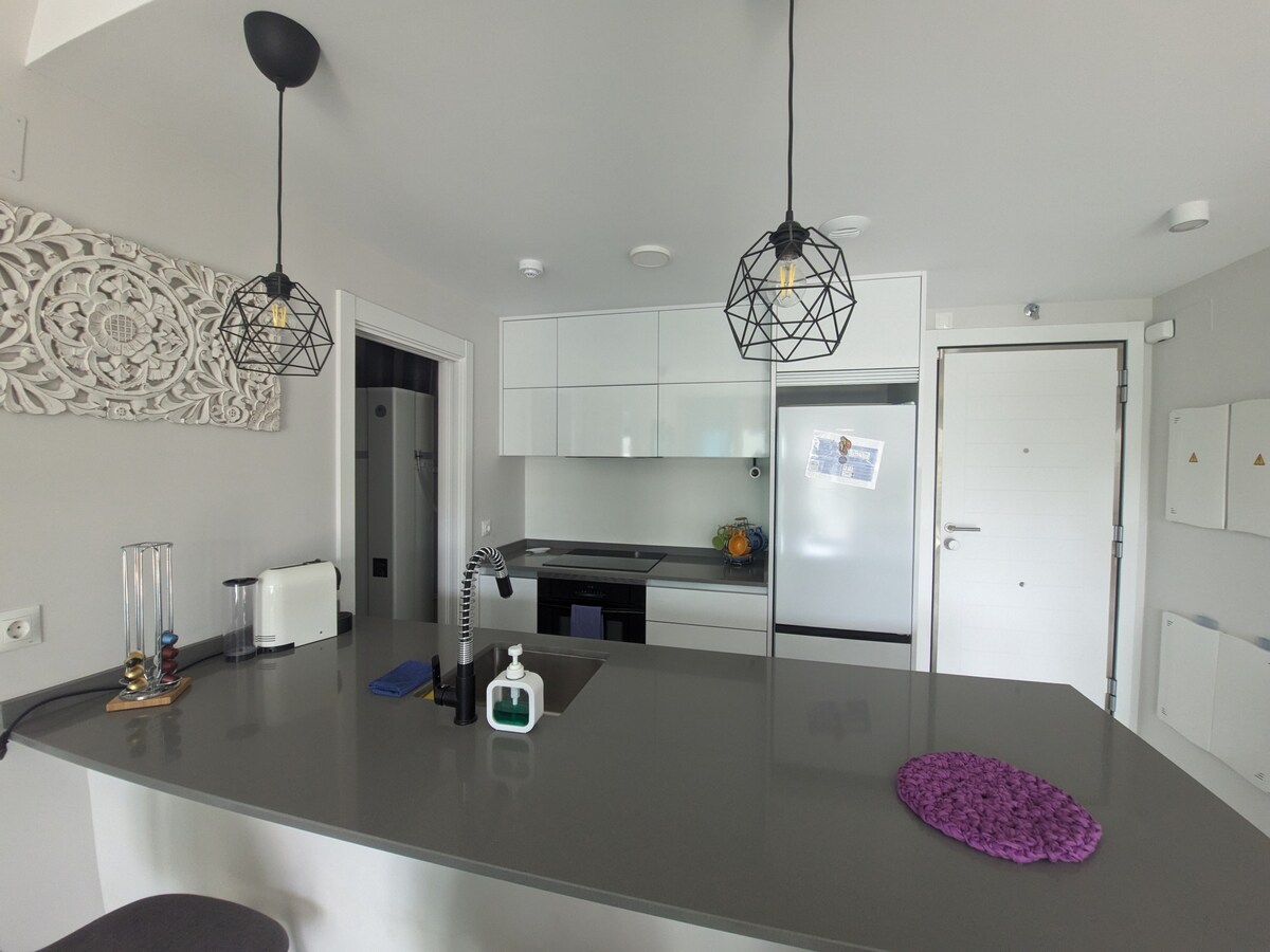 Όμορφο πρόσφατα ανακαινισμένο διαμέρισμα, φωτεινό και πολύ άνετο, που βρίσκεται στην παραλία. Διαθέτει ένα υπνοδωμάτιο, ένα μπάνιο, ένα σαλόνι-τραπεζαρία, μια ανοιχτή κουζίνα πλήρως εξοπλισμένη, μια τουαλέτα, μια μεγάλη βεράντα με θέα στη θάλασσα και χώρο στάθμευσης. Είναι ένα ιδανικό μέρος για να χαλαρώσετε ή ακόμα και να εργαστείτε, καθώς περιλαμβάνει δύο γραφεία. Το συγκρότημα προσφέρει κοινόχρηστους χώρους, πισίνα (15 Ιουνίου - 15 Σεπτεμβρίου), παιδική χαρά και γήπεδα padel. Βρίσκεται ακριβώς δίπλα σε μια σχολή ιστιοπλοΐας και κοντά στη μαρίνα και το γήπεδο του γκολφ.