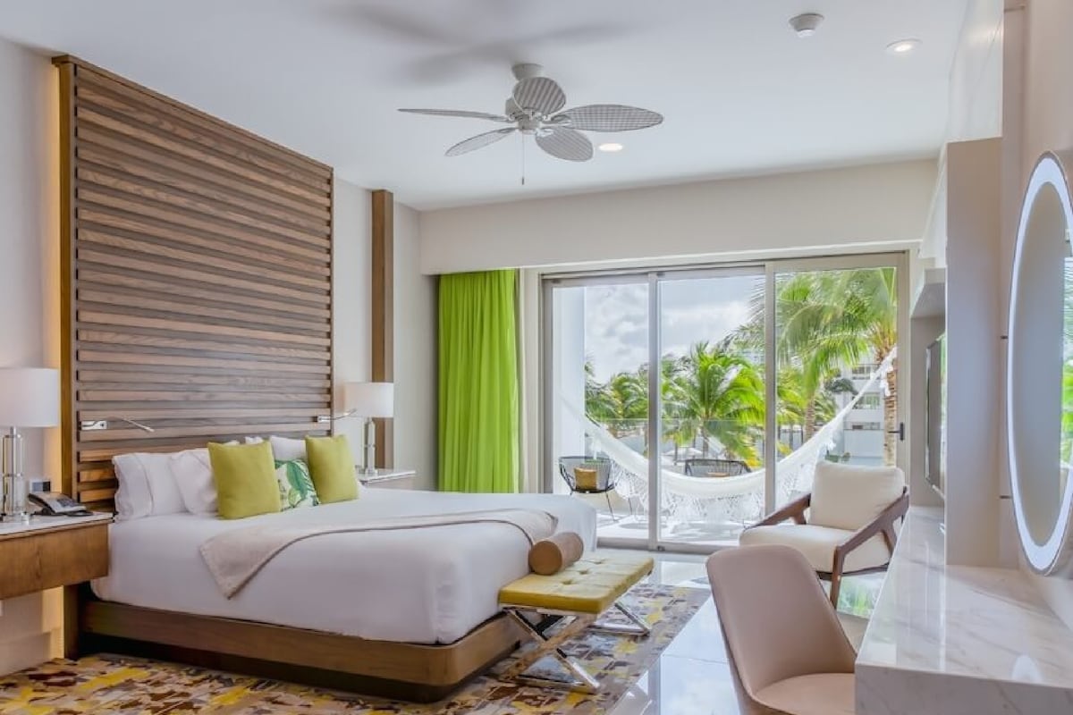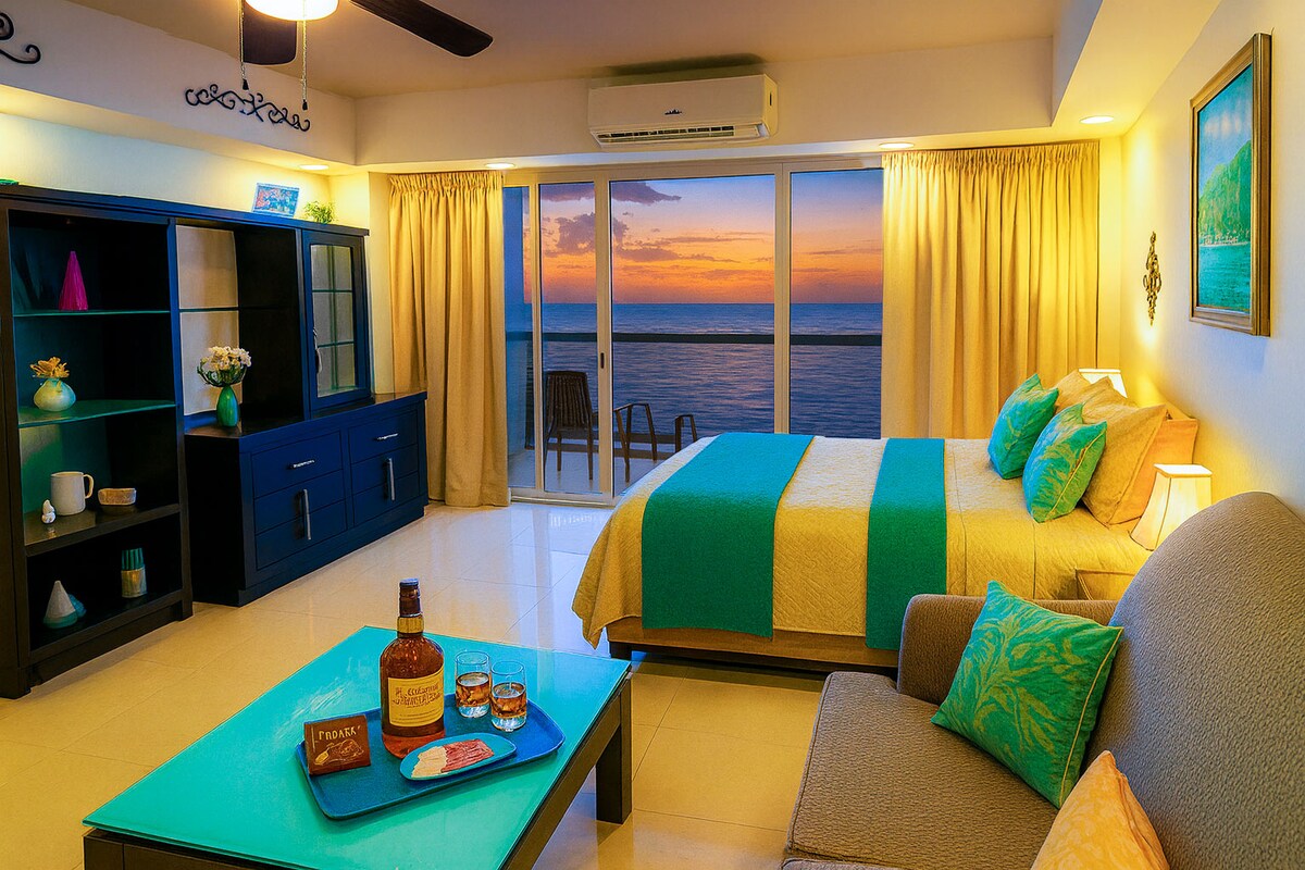 Okay, imagine this: You wake up, open your eyes, and BOOM: the Caribbean Sea is there, a beautiful blue, gorgeous, like it's flirting with you. You go downstairs and you're literally on the best beach in Cancun (It wins awards every year for being beautiful and clean… unlike your ex ever was). You're in the heart of the Hotel Zone: — Coco Bongo a few steps away, Mandala to keep the party going — Chedraui Selección to survive — Tours, rentals, tacos, birria, hot guys and girls, and a global vibe.