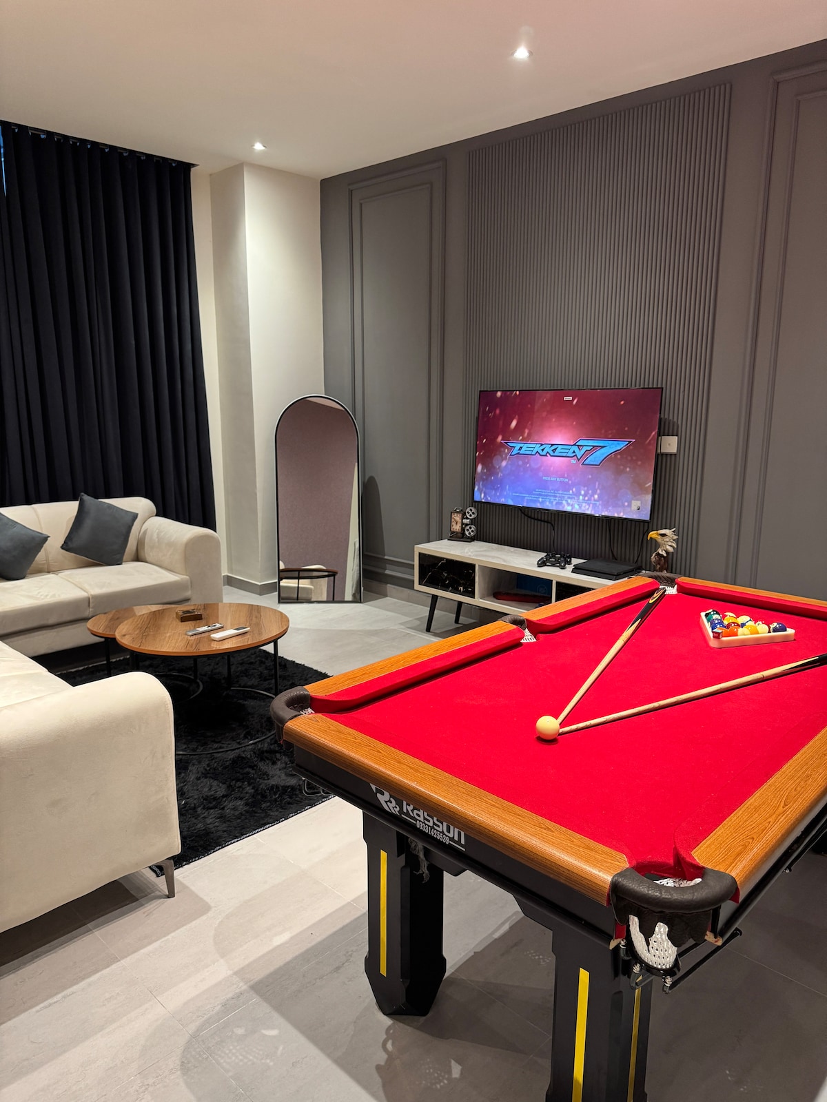 Μείνετε με την οικογένεια σε αυτό το υπέροχο κατάλυμα με πολύ χώρο για στιγμές χαράς. Υπέρδιπλο κρεβάτι Πλήρως εξοπλισμένη κουζίνα Παροχές μπάνιου Δωρεάν σνακ και ποτά Τηλεόραση LED 55 ιντσών στο σαλόνι και στο υπνοδωμάτιο Ηχοσύστημα Netflix Ναργιλέ για τους λάτρεις του ναργιλέ 24/7 φύλακες ασφαλείας στο πάρκινγκ Ευρύχωρο εξωτερικό αίθριο 5 λεπτά με το αυτοκίνητο από τον διάσημο δρόμο φαγητού Bahria 10 λεπτά με το αυτοκίνητο από το εμπορικό κέντρο Giga. Ένας καλύτερος χώρος διαμονής για μια οικογένεια Απλά φέρτε τα ρούχα σας και τα υπόλοιπα θα τα βρείτε εδώ.