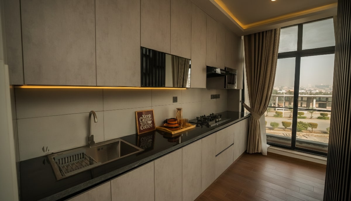 Σικ διαμέρισμα 1 υπνοδωματίου | Πισίνα υπερχείλισης I Πολυτελής ατμόσφαιρα ✨ Υπέρδιπλο κρεβάτι και ιδιωτικό μπαλκόνι Έξυπνη τηλεόραση📺 55" και εξαιρετικά γρήγορο WiFi (30 Mbps) 🍳 Πλήρως εξοπλισμένη κουζίνα Κλιματιστικά με❄️ inverter και ζεστό νερό 🔒 Έξυπνες κλειδαριές και μοντέρνα διακόσμηση 🏙️ Πάνω από το εστιατόριο Zeta Mall, λίγα βήματα από το εμπορικό κέντρο Giga Θέα σε🌄 γραφικό λόφο Ιδανικό για οικογένειες και επαγγελματίες ταξιδιώτες. Απαιτείται CNIC (18+). Απαγορεύεται το κάπνισμα/τα πάρτι. Κάντε κράτηση τώρα για άνεση και στιλ!