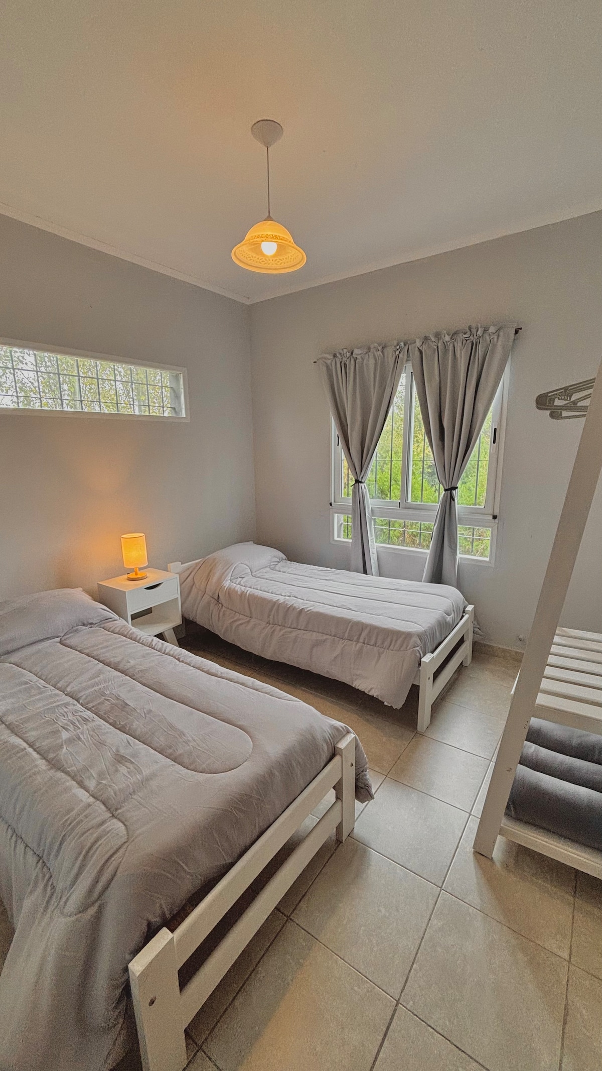 Χαλαρώστε σε αυτό το κατάλυμα 4 ατόμων 👥👥 Διαθέτει ένα υπνοδωμάτιο με διπλό κρεβάτι 🛏️ και κλιματισμό με θερμοκρασία ρύθμισης (κρύο/ζεστό). Δωμάτιο με δύο μονά κρεβάτια 🛏️. Σαλόνι, κουζίνα/τραπεζαρία με κλιματισμό θερμού/κρύου αέρα. Τηλεόραση 🛋️ Μπάνιο με τουαλέτα 🛀 Πάρκο με παλιά δέντρα, 🌴🌴Ψησταριά, Τζάκι. 🏊🏊⛱️ Πισίνα 3 x 8 μέτρων. Τοποθεσία Colonia Suiza Baradero. Λιθόστρωτος δρόμος. Ένα ιδανικό μέρος για να ξεκουραστείτε και να έρθετε σε επαφή με τη φύση. ☀️🌴🏊⛱️ Άφιξη στις 10 π.μ. και αναχώρηση στις 9 π.μ.