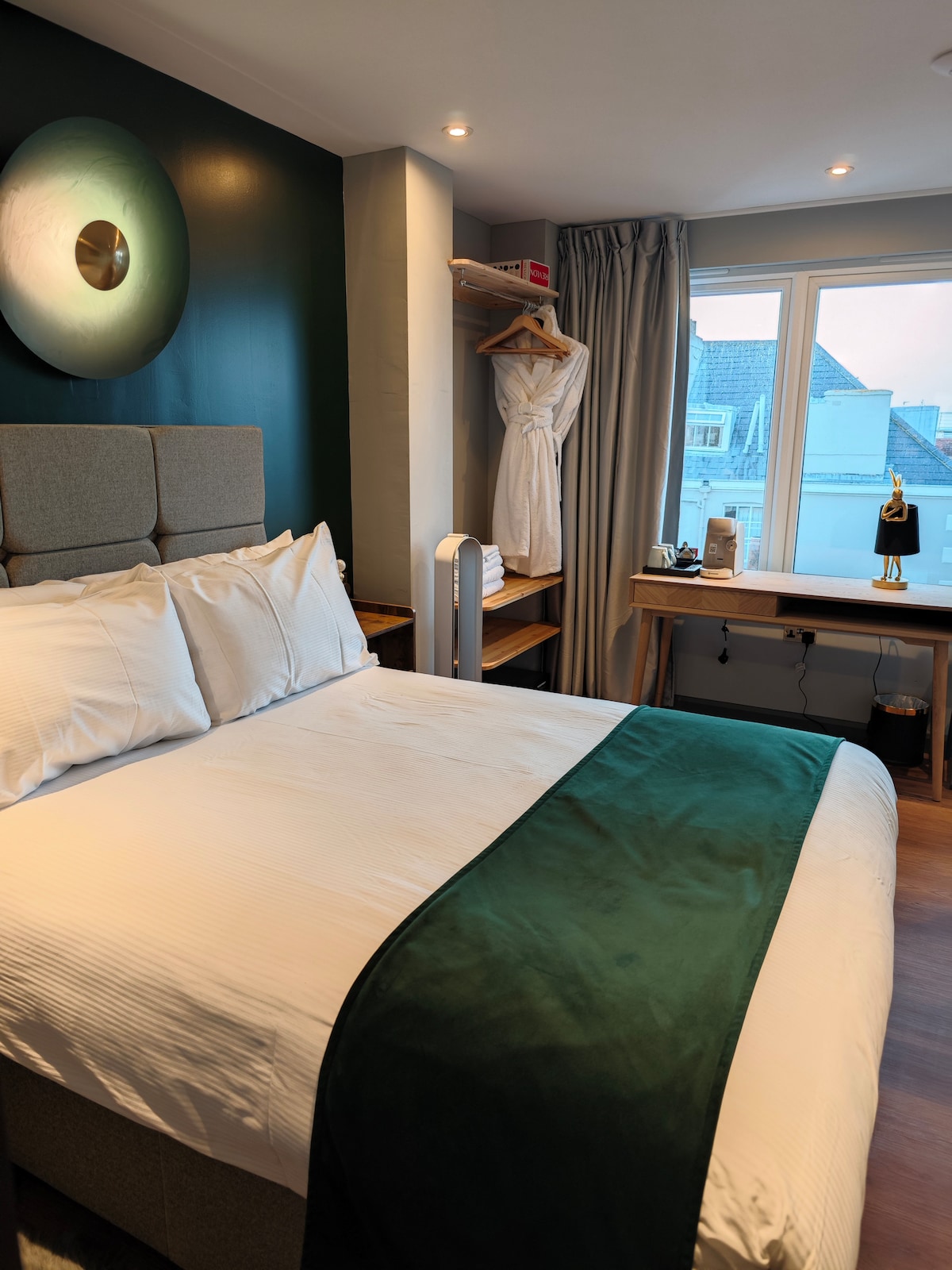 Stylish rooms surrounds you with serene comfort, featuring a sumptuous Large king bed (can split to 2 single beds by request) with premium linens, warm layered lighting, and thoughtful details like a curated armchair and full-sized botanical toiletries—all designed for quiet, modern luxury Rooms designed around the view, featuring large picture windows that capture the luminous reflection of sky on water and the picturesque ferry crossings to the Island.
