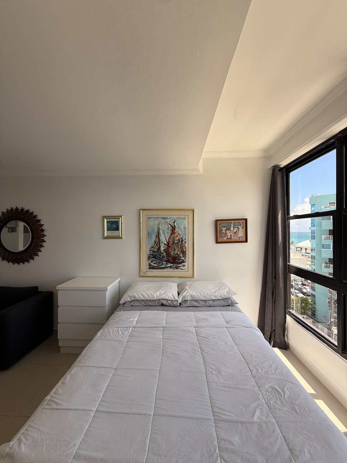 Διαμέρισμα στούντιο ιδανικό για ζευγάρια. Beach Front, όμορφη θέα. 5 λεπτά από το αεροδρόμιο. Κοντά σε ξενοδοχεία, δείπνο και νυχτερινή ζωή. Πλήρως εξοπλισμένη κουζίνα, καλωδιακή τηλεόραση, Apple TV, wifi, κλιματιστικό. αγορά και ΒΙΟΓΡΑΦΙΚΆ ΣΗΜΕΙΏΜΑΤΑ που διασχίζουν την οδό. Ακριβώς δίπλα στο ξενοδοχείο Royal Sonesta, κοντά σε εστιατόρια. Η πηγή ηλεκτρικού ρεύματος PR είναι πολύ εύθραυστη. Ενδέχεται να προκύψουν διακοπές ρεύματος. Το διαμέρισμα είναι εξοπλισμένο με μπαταρία που θα ενεργοποιήσει το διαμέρισμα, εκτός από το κλιματιστικό και τον θερμοσίφωνα. Απαιτούνται οδηγίες