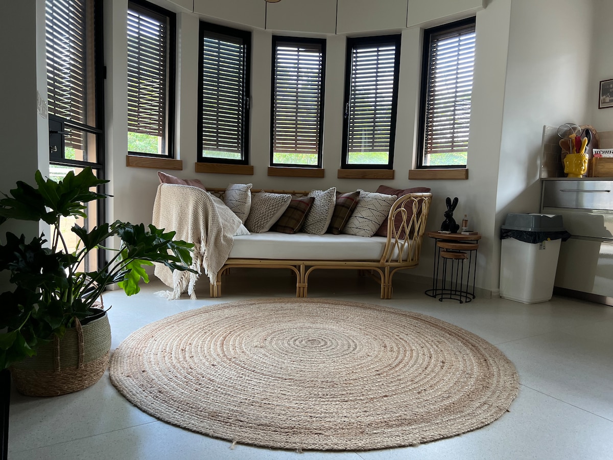 Μια ρομαντική σουίτα στην εξοχή με καταπράσινο κήπο🌿, μοντέρνα ρουστίκ διακόσμηση σε ένα ήσυχο χωριό ανάμεσα σε αμπελώνες. Πλήρως εξοπλισμένη κουζίνα, φρέσκα βότανα από τον κήπο, επιτραπέζια παιχνίδια και τηλεόραση. Ιδανικό για αποσύνδεση - μονοπάτια της φύσης σε κοντινή απόσταση🌳. Η ειρηνική απόδρασή σας από τη ζωή της πόλης σας περιμένει! ★"Ο χώρος ήταν καθαρός και όμορφος, η κουζίνα ήταν καλά εξοπλισμένη. Η περιοχή είναι πανέμορφη. Ο Nitzan ανταποκρίθηκε πολύ γρήγορα με εξαιρετικές προτάσεις. Το συνιστώ ανεπιφύλακτα!" - Πρόσφατος επισκέπτης