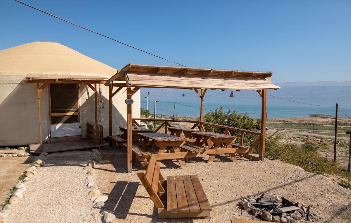 Όμορφη μογγολική σκηνή, κλιματιζόμενη και ευρύχωρη κάτω από τον γκρεμό των αντιγράφων και μπροστά από την ανοιχτή θέα της Νεκράς Θάλασσας. Ένα ιδανικό μέρος για να συγκεντρώσετε φίλους και ξεχωριστούς εορτασμούς. Η σκηνή μπορεί να φιλοξενήσει έως και 20 άτομα. Κατάλληλο για επισκέπτες που αναζητούν μια ξεχωριστή εμπειρία φιλοξενίας! Η κουζίνα, η τουαλέτα, οι ντουζιέρες και η τραπεζαρία βρίσκονται έξω από τη γιούρτα δίπλα της. Η κοινότητά μας είναι θρησκευόμενη, οπότε τις Παρασκευές και τα Σάββατα δεν μπορείτε να ανάψετε φωτιά ή να παίξετε δυνατή μουσική, αλλά μπορείτε να πηγαινοέρχεστε με το αυτοκίνητο. * Έχουμε κουβέρτες και μαξιλάρια, μπορούν να παραγγελθούν με χρέωση 20 NIS ανά άτομο. Σεντόνια και πετσέτες Δεν σας παρέχουμε να τα έχετε μαζί σας. 🙏