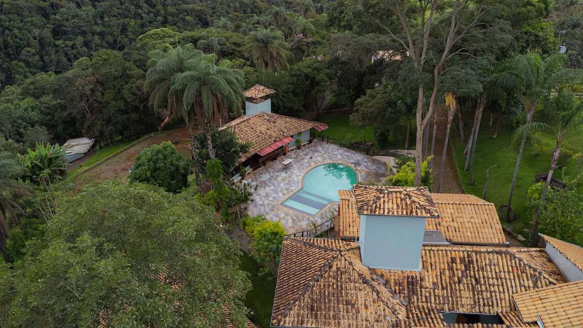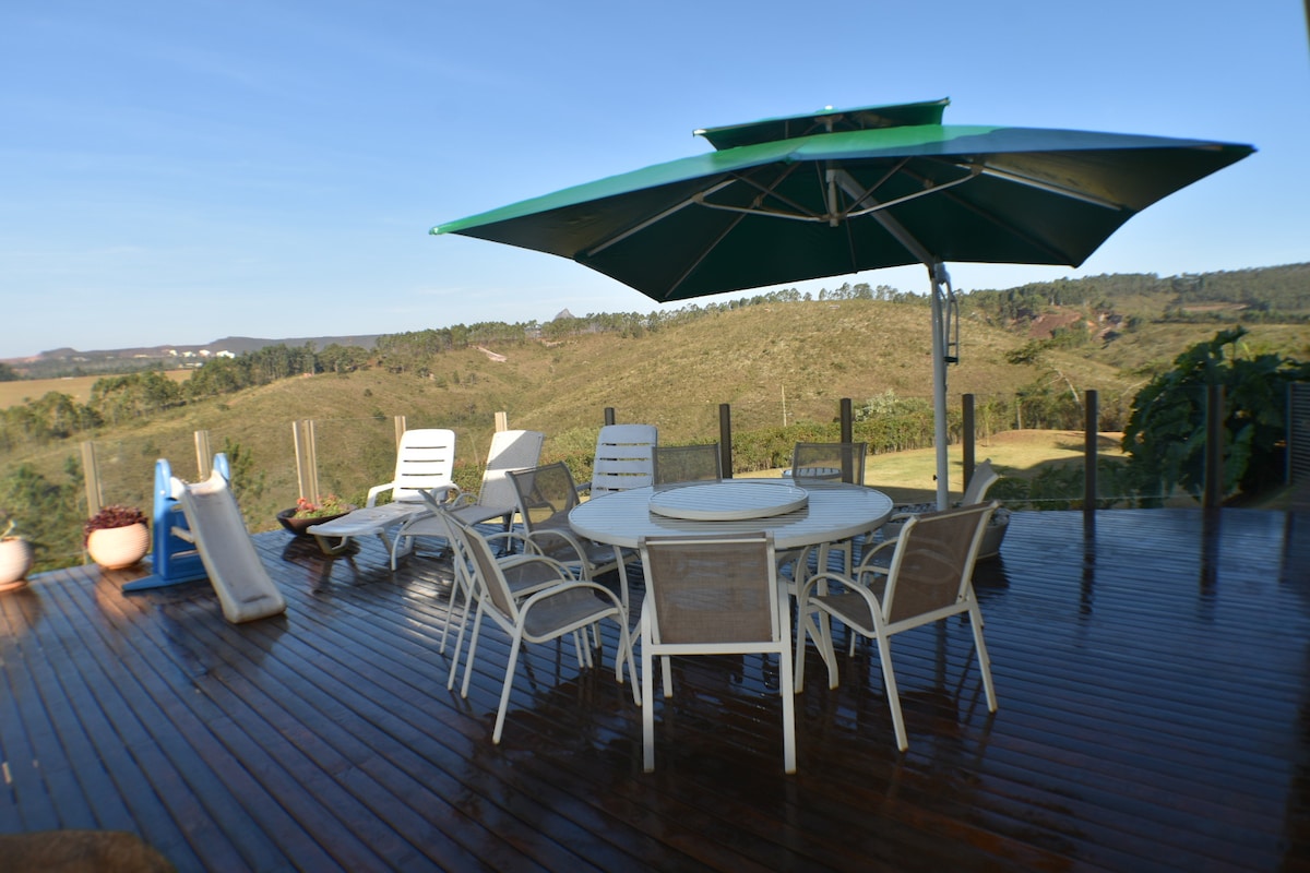 Για εσάς που θέλετε να απολαύσετε την ειρήνη και την ηρεμία μέσα στη φύση. Μεγάλη εξοχική κατοικία με ευάερα, καλά φωτιζόμενα δωμάτια, με όμορφη θέα και ιδιωτικότητα. Όμορφη εξωτερική πισίνα με βεράντα και ξαπλώστρες. Χώρος για μπάρμπεκιου, μπιλιάρδο και τραπέζι για χαρτιά. Όμορφο κήπο και γκαζόν για αθλήματα. Ιδανικό για τους λάτρεις της πεζοπορίας!Υπέροχη θέα στο ηλιοβασίλεμα και την περίφημη κορυφή του Itabirito. Ιδανικό για παρέες φίλων και οικογένειες!
