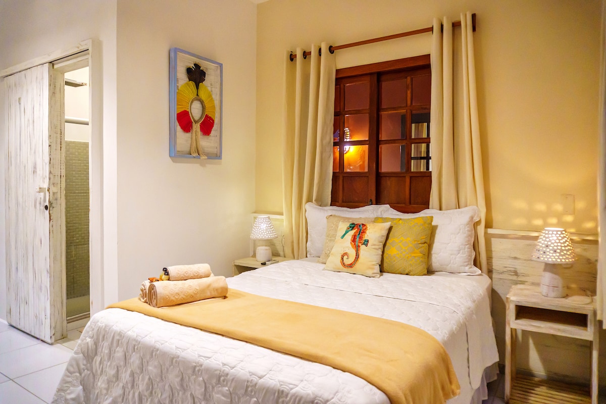 No coração de Porto Seguro, a Pousada Cores da Passarela é o refúgio perfeito para quem busca conforto e tranquilidade. Nossos quartos climatizados são o convite perfeito para relaxar após um dia explorando as belezas da cidade. Acorde com o canto dos pássaros e desfrute da vista serena do nosso exuberante jardim diretamente da janela do seu quarto.