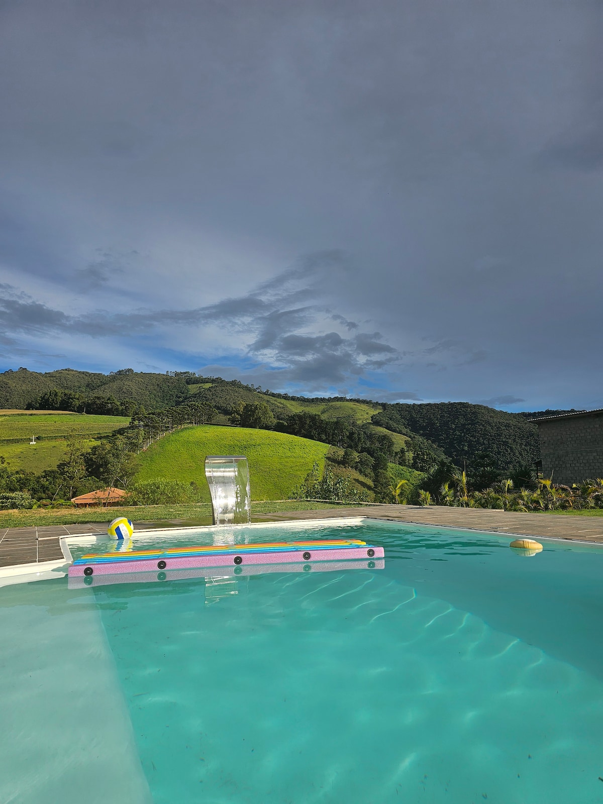 Chácara para Locação em Itajubá/MG - Localizada a 4,5 km do centro, com apenas 1,3km de estrada de terra. - Possui 3 quartos, 3 banheiros, cozinha gourmet, fogão a lenha, forno de pizza, churrasqueira, deck e piscina com vista panorâmica. - Acomoda até 10 pessoas. - Nosso sítio tem uma vista incrível e fica em um ponto alto, com subida íngreme (bloquetada). Alguns carros podem ter dificuldade para subir, principalmente veículos baixos ou com pouca potência. Recomendamos subir com cuidado.