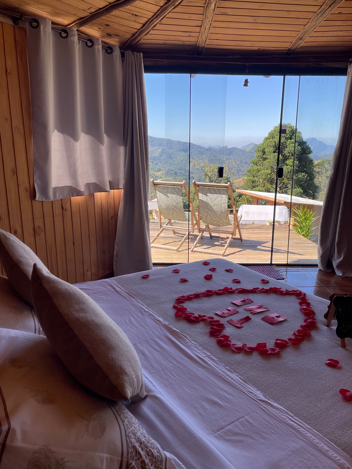 Καλώς ήρθατε στο ξυλόσπιτό μας στη Serra da Mantiqueira, ιδανικό για ζευγάρια που αναζητούν μια ρομαντική και αξέχαστη εμπειρία. Ελάτε να απολαύσετε την υπέροχη θέα και την ηρεμία της φύσης. Χαλαρώστε στην μπανιέρα και απολαύστε έναν άνετο χώρο με πανοραμική θέα στα βουνά, βλέποντας την ανατολή και το ηλιοβασίλεμα. Το τζάκι ολοκληρώνει τη σκηνή. Ο εξωτερικός χώρος με τζάκι είναι ιδανικός για μοναδικές στιγμές. Ελάτε να ζήσετε την καλύτερη φύση και ρομαντισμό στο ξυλόσπιτό μας.