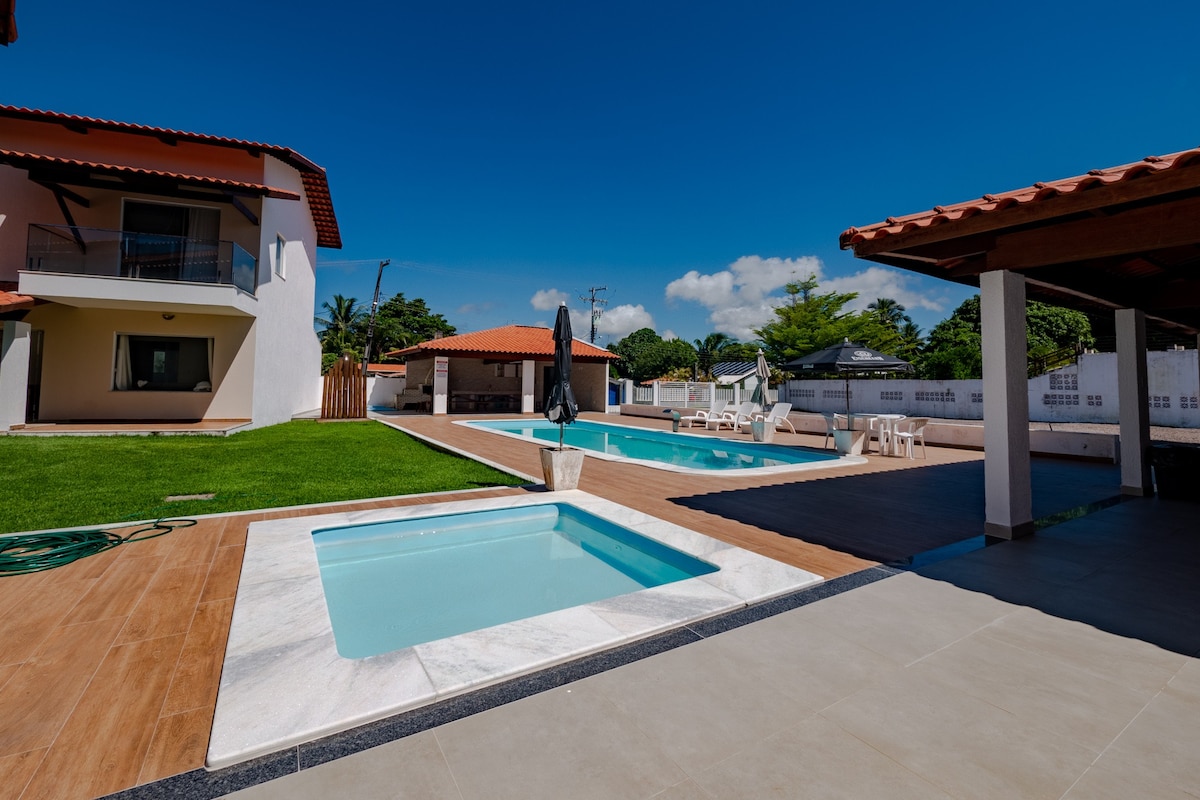 Σπίτι σε περιφραγμένο οικόπεδο 700 τ.μ. για τα παιδιά και τα κατοικίδιά σας, 120 μέτρα από την παραλία, στο συγκρότημα Recanto das Pérolas δίπλα στη θάλασσα. Κυκλοφορείτε με ειρήνη και ασφάλεια. Διαθέτουμε Wi-Fi, 4 υπνοδωμάτια (όλα με ανεμιστήρες οροφής και κλινοσκεπάσματα), 3 μπάνια και ένα ντους για όταν επιστρέφετε από την παραλία. Περίπτερο με τραπέζι: συγκεντρώστε την οικογένεια σας σε εξωτερικό χώρο για φαγητό και παιχνίδι, σε αυτόν τον χώρο που είναι εξοπλισμένος με νεροχύτη, φούρνο ξύλων και ψησταριά που ταιριάζει όμορφα με τον οριζόντιο καταψύκτη της κουζίνας. Καλώς ήρθατε!