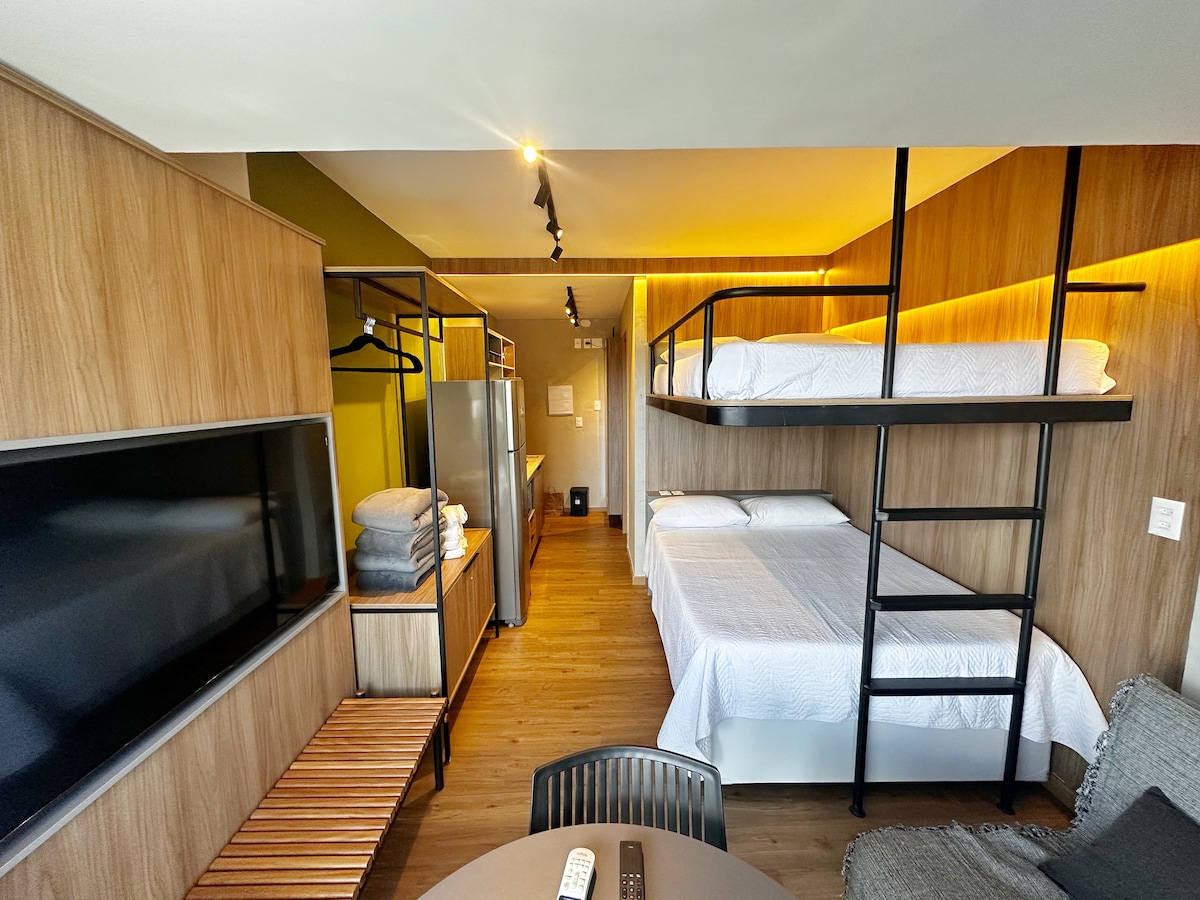 Aproveite o carnaval de Salvador na melhor localização! Studio dentro do circuito Barra/Ondina, com vista para os trios! Studio moderno e confortável com vista nascente para o mar, no novíssimo Spot Barra. Ideal para até 4 pessoas, que conta com duas camas de casal (beliche) e um sofá cama de solteiro, em ambiente integrado com uma cozinha equipada. Edifício com cafeteria no térreo, academia, lavanderia, mini mercado, coworking e piscina no terraço com uma vista de tirar o fôlego.