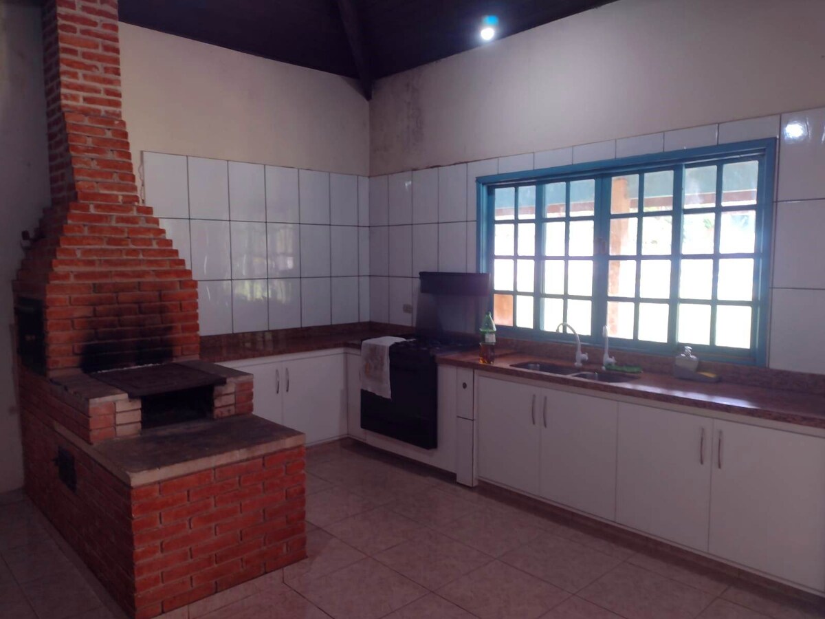 Casa compacta com 2 quartos, sendo um deles sala/quarto tem sofá e TV Netflix,wiff,temos uma pequena cozinha e uma área externa grande e gramada muito agradável. Relaxe com toda a família nesta acomodação , dedique-se a criar memórias felizes em companhia das suas pessoas favoritas. aconchegante pra receber você e seus acompanhantes pra curtir um fim de semana ou alguns dias durante a semana, temos churrasqueira, Piscina, balanço, gangorra,redes de descanso ,local bem ensolarado e tranquilo.
