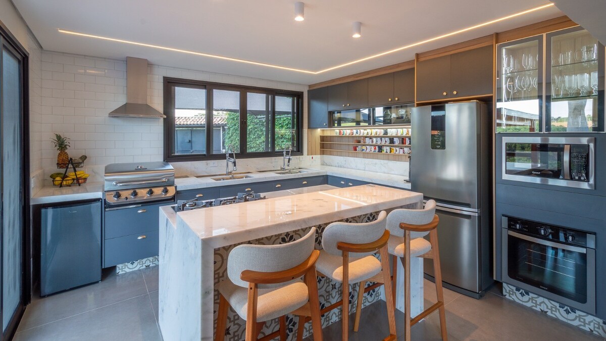 Uma experiência que proporciona exclusividade e requinte para você e seus amigos/familiares, tanto no verão quanto no inverno. Sabe aquele clima de montanha, com uma casa totalmente equipada pro seu conforto aqui você pode encontrar. Inclusive com um mezanino com projetor para momentos de descanso e relaxamento com acesso ao seu streaming favorito. Sao 3 suites com cama de casal, ar condicionado, persianas automatizadas. A cozinha é um convite e a vista é uma experiencia a parte..