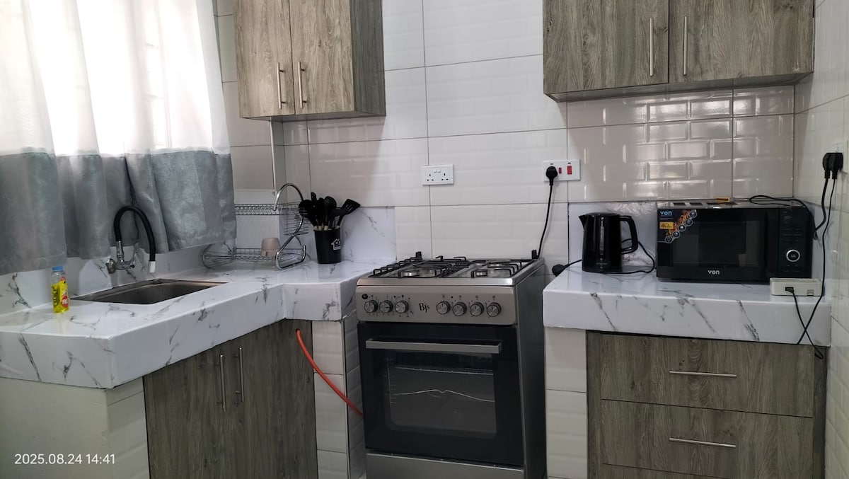 Χαλαρώστε σε αυτόν τον ήρεμο, κομψό χώρο. Επιπλωμένο με απόλυτη ακρίβεια και προσοχή. Ιδανικό για άτομα και συζύγους που επισκέπτονται την πόλη του Eldoret. Έχουμε διαμορφώσει προσεκτικά αυτόν τον χώρο για να διασφαλίσουμε ότι απολαμβάνετε άνεση και γαλήνη σε προσιτές τιμές. Καλώς ήρθατε στο σπίτι!
