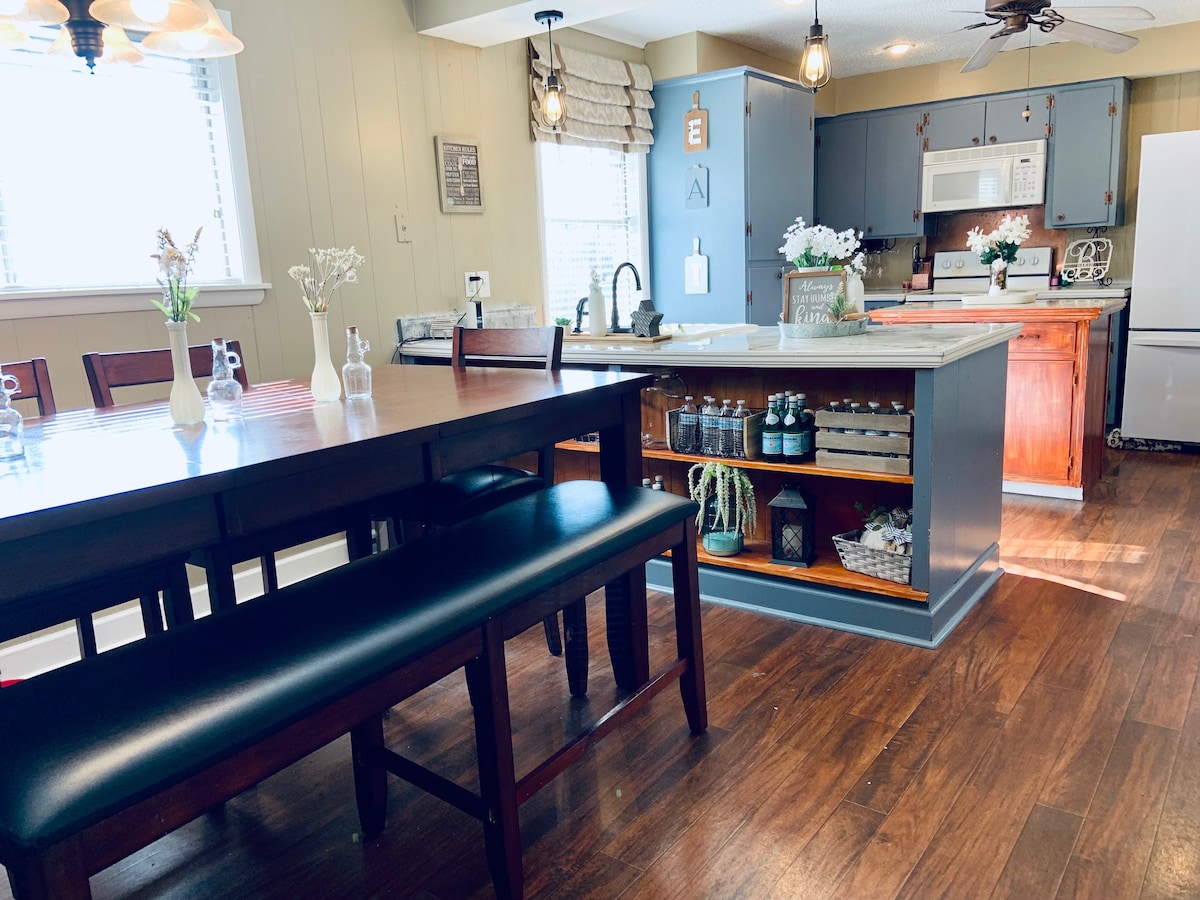 Φανταστείτε ένα ολόκληρο σπίτι μόνο για εσάς!!!! Αυτό το κατάλυμα βρίσκεται σε κοντινή απόσταση με τα πόδια από όλα τα εστιατόρια γρήγορου φαγητού και σε απόσταση 7 λεπτών με το αυτοκίνητο από τη Σχολή Μαγειρικής Viking, τις Γαρδένιες και τις μπουτίκ που βρίσκονται στο κέντρο της πόλης. Η πίσω αυλή είναι εξοπλισμένη με τζάκι και άφθονα καθίσματα (είτε στη βεράντα είτε στη βεράντα) με άφθονο χώρο για να απολαύσουν οι μικροί την πίσω αυλή. Είναι κυριολεκτικά μια όαση! Το γκαζόν ψεκάζεται μηνιαίως για κουνούπια και το κατάλυμα καθαρίζεται για τον Covid πριν και μετά από κάθε διαμονή.