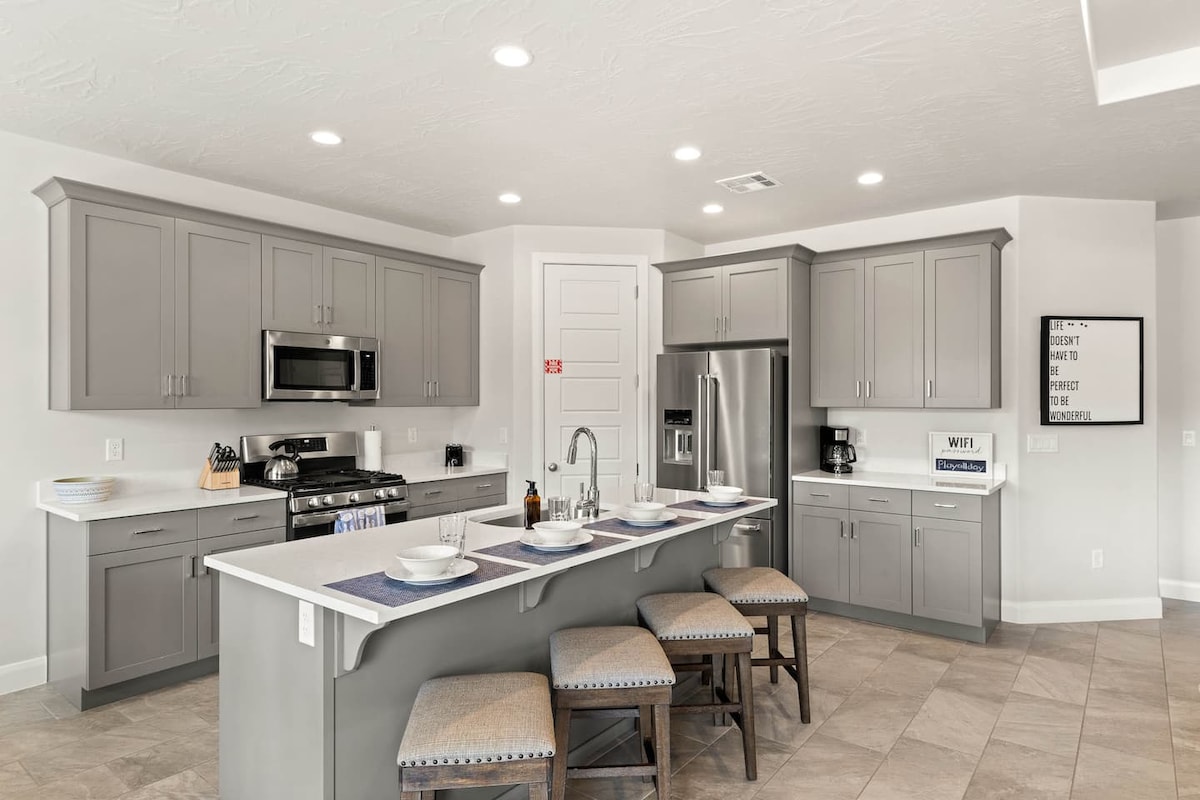 Διαμονή σε θέρετρο στην είσοδο της Σιών και του Snow Canyon. Αυτό το εκπληκτικό κατάλυμα 3 υπνοδωματίων μπορεί να φιλοξενήσει 6 άτομα και διαθέτει πρόσβαση σε ολοκαίνουργια θερμαινόμενη πισίνα αναψυχής, τεχνητό ποτάμι, παιδική πισίνα, 2 τζακούζι και γήπεδα pickleball – όλα θερμαινόμενα όλο τον χρόνο. Πολυτελές φινίρισμα, πλήρως εξοπλισμένη κουζίνα, ηλεκτρονικά παιχνίδια και φορτιστής για ηλεκτρικό όχημα στο γκαράζ. Η περιπέτεια σάς περιμένει ακριβώς έξω από την πόρτα.