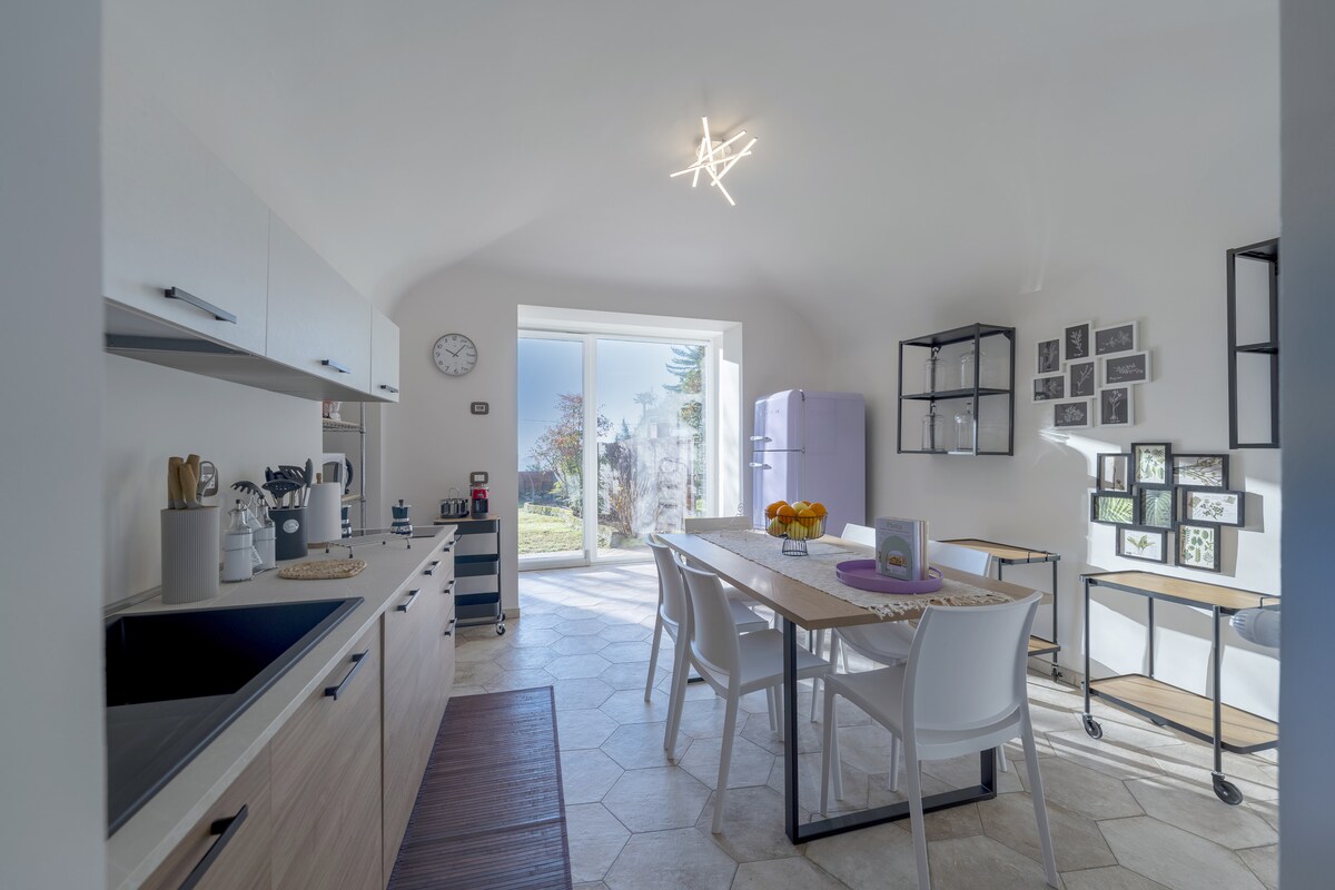 Relaxing, wide, very bright apartment. Large private courtyard, parking and and garden. Located on the Via Francigena, a stone's throw from the 5 lakes park and Ivrea 2km away. In a strategic position for visiting the Aosta Valley, Turin and the Canavese area. With views of the Alps and the Serra morenica. Availability of supermarkets nearby, pizzeria, restaurant, bar, pastry shop, bakery. Video surveillance and safe place for ebikes and bicycles. Smartworking room with wifi.