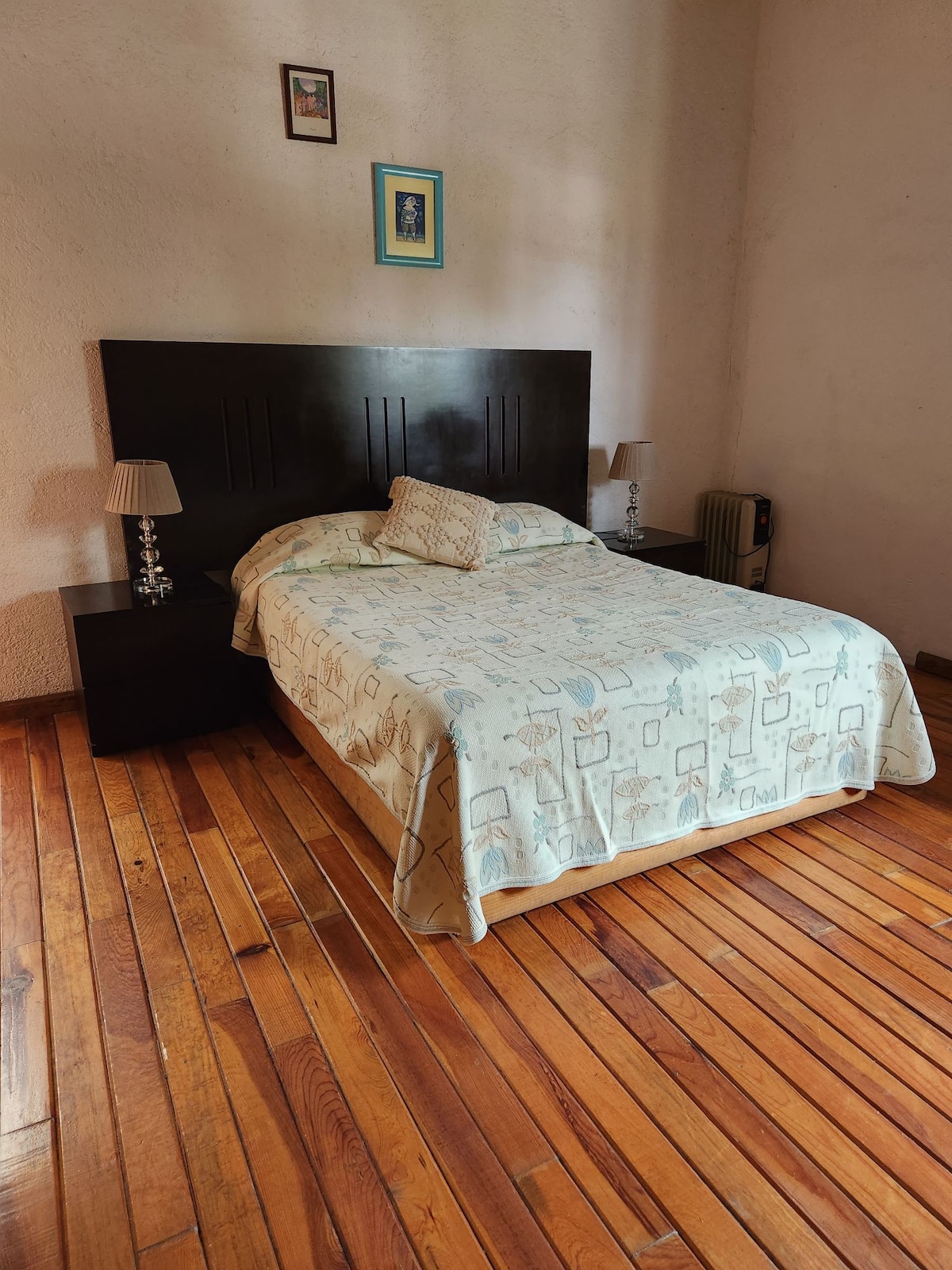 Habitación con cama grande para dos personas. Esta rodeado de vegetación, esta ubicado en las faldas de la Malinche. Estamos a tres km de la pequeña ciudad de Huamantla Tlax. Cuna del titere, la festividad de la noche que nadie duerme y huamantlada. La casa no está acondicionada para bebés o niños pequeños ya que a la entrada hay una escalera de piedra que podría ser peligrosa si los padres se descuidan y para personas que no sean autosuficientes sería complicado.