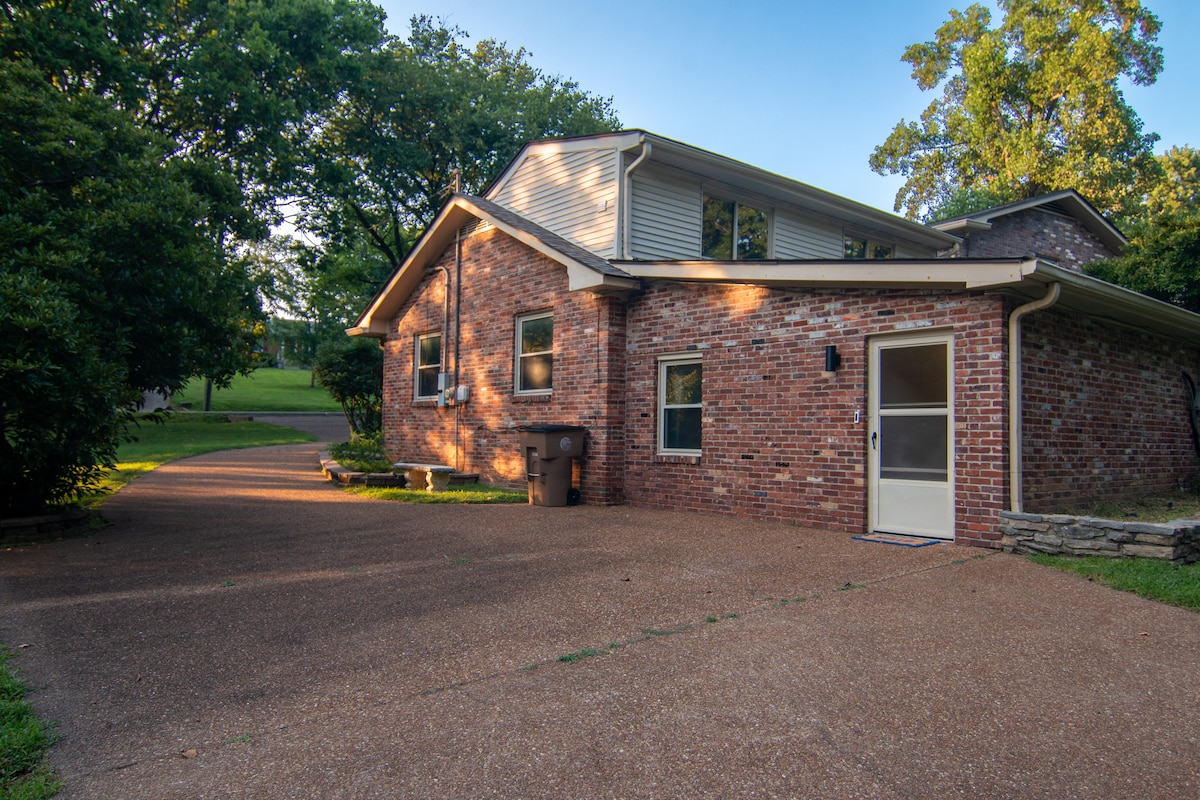 Ήσυχο και βολικό - ένα εξαιρετικό μέρος για να χαλαρώσετε μετά από μια επίσκεψη στο κέντρο του Νάσβιλ ή μια γρήγορη διανυκτέρευση. Μόνο 7 λεπτά από το αεροδρόμιο, 15-20 λεπτά από την καρδιά του κέντρου και ακόμα πιο κοντά σε δημοφιλή εστιατόρια, καταστήματα και πράσινα μονοπάτια. Είτε πρόκειται για διακοπές είτε για επαγγελματικό ταξίδι, απολαύστε ένα ήσυχο μέρος για να χαλαρώσετε. Περιλαμβάνει μεγάλη βεράντα με σήτα, ένα κοινόχρηστο εξωτερικό αίθριο με τούβλα καλυμμένα με βρύα/πέτρινα μονοπάτια και κήπο με καταρράκτη, λίμνη, ιαπωνικά ψάρια και χρυσόψαρα για να ταΐσετε. Επιτρέπονται τα κατοικίδια.