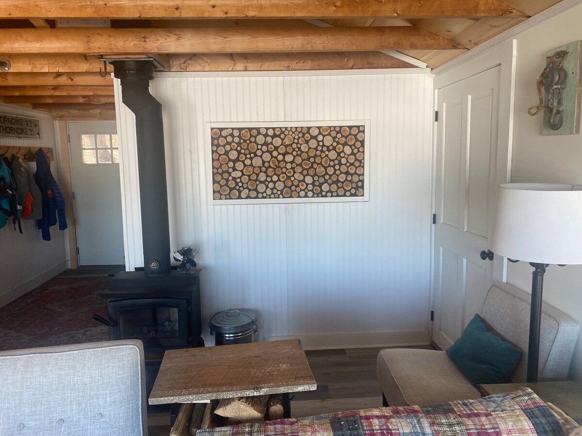 Αποδράστε στο νεόκτιστο ξυλόσπιτό μας 79 τ.μ. στο Midcoast Maine, ένα ήσυχο καταφύγιο σε ένα δάσος 120 στρεμμάτων. Ιδανικός για έως 6 επισκέπτες, αυτός ο μοναδικός χώρος διαθέτει έναν εκπληκτικό τοίχο με παράθυρα με θέα στο δάσος, σε μικρή απόσταση με το αυτοκίνητο από γοητευτικές παραθαλάσσιες πόλεις και γραφικά πάρκα. Ξυπνήστε με τον απαλό πρωινό ήλιο που ξεπροβάλλει πάνω από τα δέντρα, χαλαρώστε και αναπνεύστε βαθύτερα κάτω από έναν ουρανό γεμάτο αστέρια και δείτε τι έχουν να προσφέρουν και οι τέσσερις εποχές. Η γαλήνια απόδρασή σας σας περιμένει!