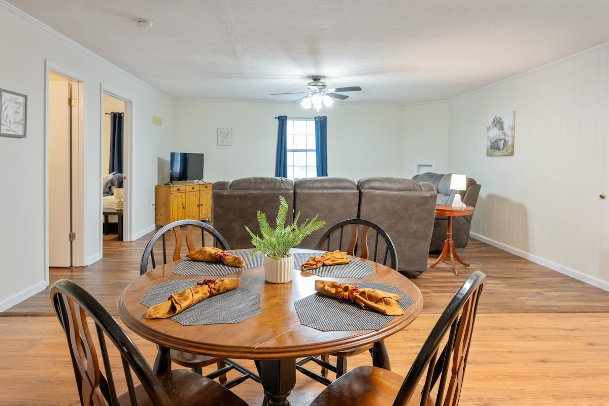 Κάντε διακοπές στο Holladay! Χαλαρώστε σε αυτή τη μοναδική και ήρεμη απόδραση στην καρδιά του Holladay, TN! Αυτό το άνετο διαμέρισμα βρίσκεται 5 λεπτά από την έξοδο 126 στον αυτοκινητόδρομο Interstate 40, μόλις λίγα λεπτά από τον ποταμό TN, τη μαρίνα Birdsong, το πάρκο Nathan Bedford Forrest και το πάρκο Natchez Trace State Park. Αυτή η περιοχή είναι γνωστή ως ο παράδεισος των αθλητών και αυτό το κατάλυμα έχει σχεδιαστεί με αυτό κατά νου, με πινελιές από ξύλο και έναν όμορφο, μεγάλο πάγκο από κέδρο. Υπάρχει ένα διπλό κρεβάτι και ένας καναπές-κρεβάτι για παιδιά ή επιπλέον επισκέπτες.