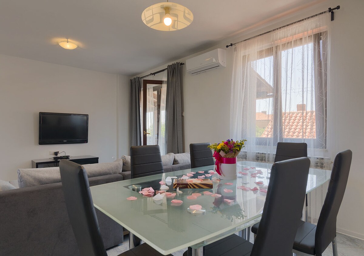 Το διαμέρισμα είναι καινούριο και διαθέτει όλα όσα χρειάζεστε για μια ευχάριστη και ξέγνοιαστη διαμονή στην τριών χιλιάδων ετών πόλη μας, την Πούλα. Παρέχεται δωρεάν πάρκινγκ για το αυτοκίνητό σας. Το διαμέρισμα βρίσκεται κοντά στη διάσημη Αρένα και σε περίπου δέκα λεπτά με τα πόδια από το κέντρο της πόλης που είναι γεμάτο με ιστορικά και πολιτιστικά αξιοθέατα από την ιστορική εποχή. Αν θέλετε να απομακρυνθείτε και να ξεκουμε από την πόλη σε λίγα λεπτά με τα πόδια ή με το αυτοκίνητο, το διαμέρισμα σας το επιτρέπει σίγουρα επειδή βρίσκεται σε μια ήσυχη περιοχή της πόλης. Καλώς ήρθατε! :-)