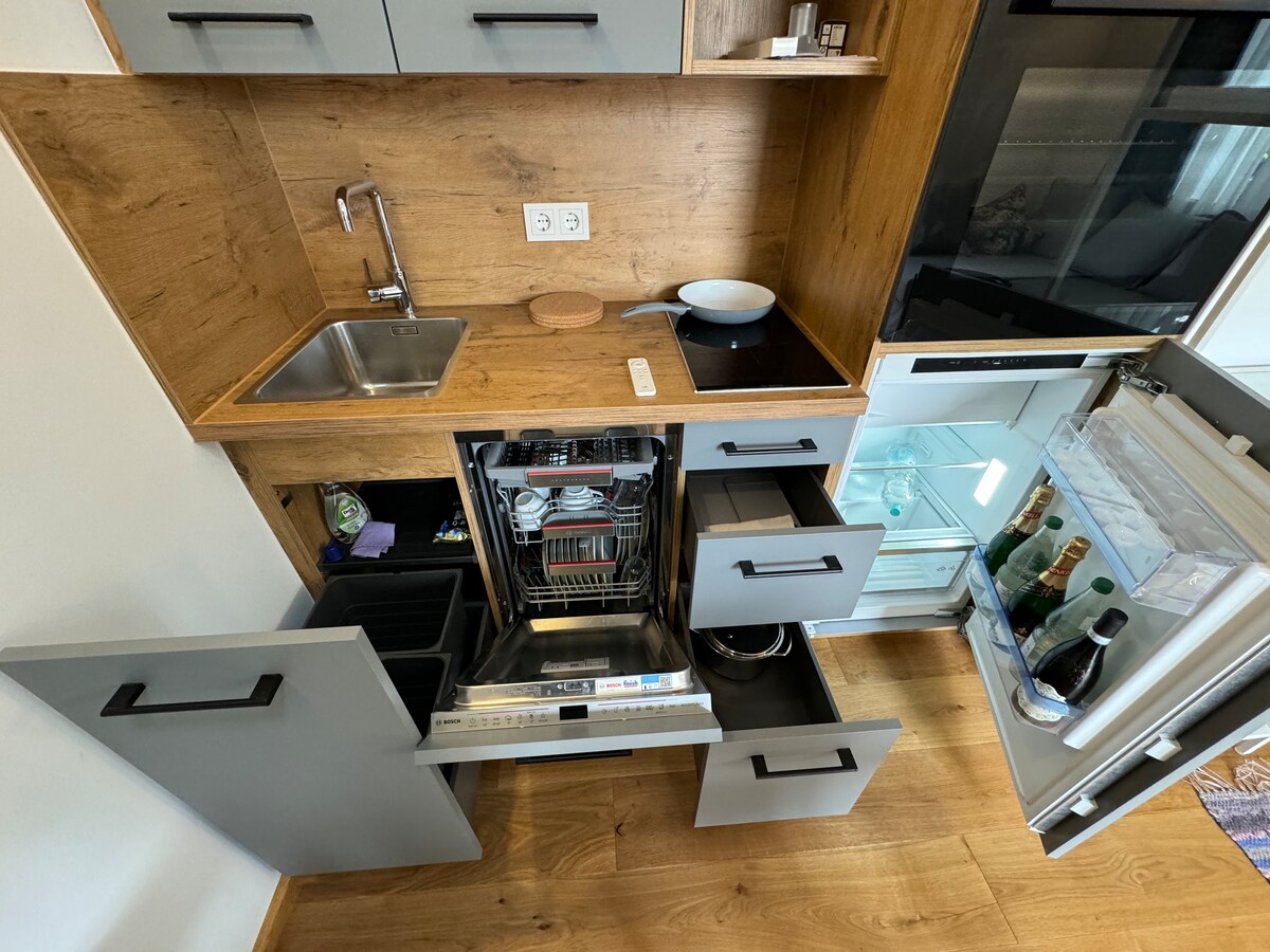 Τα εξοχικά είναι χτισμένα σε ξυλοπόδαρα. Το καθένα έχει τη δική του σκάλα και πρόσβαση. Και τα δύο σπίτια είναι εξοπλισμένα με πλήρως εξοπλισμένη κουζίνα και μπάνιο. Η κουζίνα με ψυγείο, κουζίνα, φούρνο, καφετιέρα Senseo και καφετιέρα φίλτρου, βραστήρα και όλα τα μαγειρικά σκεύη που χρειάζεστε. Στο μπάνιο, εκτός από την τουαλέτα, τον νιπτήρα και την ντουζιέρα, θα βρείτε επίσης ένα πιστολάκι μαλλιών, καθώς και πετσέτες χεριών και σώματος. Και τα δύο δωμάτια διαθέτουν μεγάλες τηλεοράσεις επίπεδης οθόνης. Πολύ καλή λήψη wifi