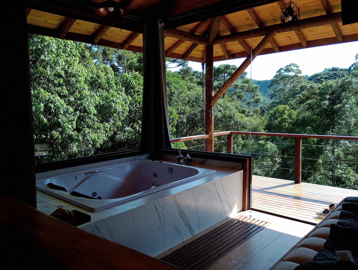 Ρομαντικό σαλέ με τζακούζι σε υπαίθριο χώρο στο Campos do Jordão