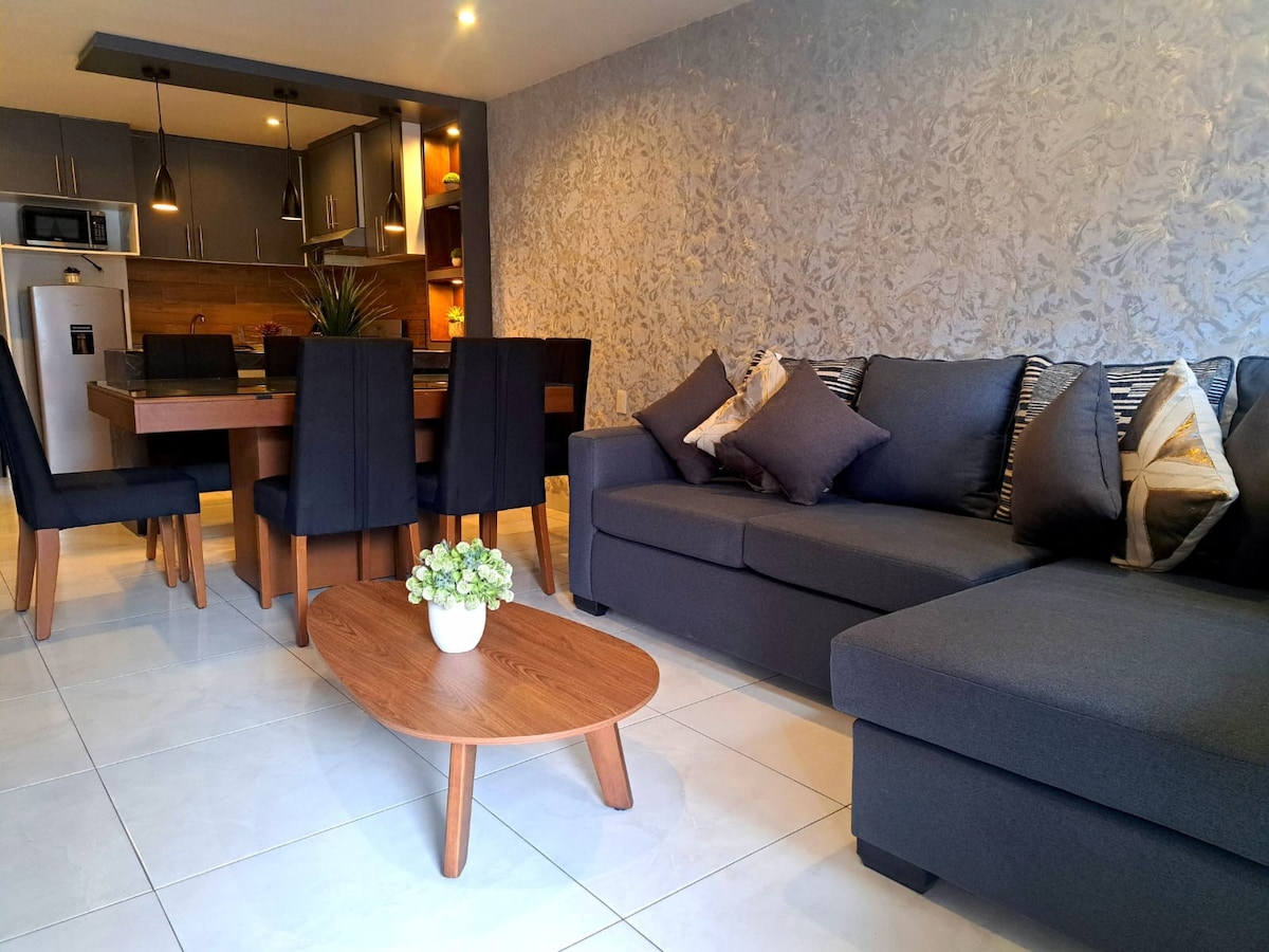 Όμορφο πολυτελές διαμέρισμα στο κέντρο του Teziutlan, 3 λεπτά από την πρίζα, διαθέτει όλες τις παροχές για να κάνει τη διαμονή σας εξαιρετική, δωμάτια με χαλιά, πλυντήριο, στεγνωτήριο, γραφείο με όλο τον εξοπλισμό για εργασία εξ αποστάσεως, wifi, οθόνες 65", τις καλύτερες πλατφόρμες streaming, δωρεάν ποτά και ποτά επισκεπτών, ασανσέρ, υπόγειο συρτάρι στάθμευσης, ασφαλή χώρο με 24ωρη παρακολούθηση, ηλεκτρονική κλειδαριά, ζεστό νερό, ιδιωτικότητα και άνεση.