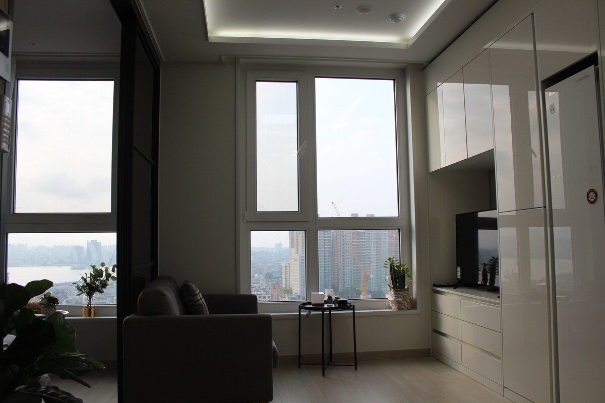Η καλύτερη θέα Ξενοδοχείο 11ος όροφος Junior Suite 1,5 δωμάτια (35m ") Μεγάλο υπνοδωμάτιο και σαλόνι και κουζίνα Διαχωρισμένο δωμάτιο Μπορείτε να απολαύσετε ταυτόχρονα τη θέα στο βουνό, τη θάλασσα και τη λίμνη. Ως νέο ξενοδοχείο τον Ιανουάριο του 2020, βρίσκεται στο κέντρο της πόλης, σε απόσταση 200 μέτρων από την αγορά τουριστικών και αλιευτικών προϊόντων του Σοκτσό, το Γκαεμπάε, το χωριό Αμπάι, το λιμάνι Ντονγκμιονγκ, το λιμάνι του Σοκτσό, τον φάρο, την παραλία του Σοκτσό, τη λίμνη Τσέονγκτσό και άλλα τουριστικά αξιοθέατα και διάσημα εστιατόρια, καθώς και βολικές συγκοινωνίες, δωρεάν πάρκινγκ, σταθμούς φόρτισης ηλεκτρικών αυτοκινήτων και άλλες ανέσεις. Τα δωμάτια είναι επίσης πολύ καθαρά και μοντέρνα, καθώς τα διαχειρίζεται ο ίδιος ο διαχειριστής, ώστε να μπορείτε να χαλαρώσετε.
