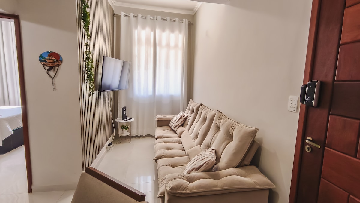 Το κατάλυμά μας έχει σχεδιαστεί έτσι ώστε να έχετε πολλή άνεση και πρακτικότητα στο κατάλυμά σας! Το διαμέρισμα 401 είναι ένα πολυτελές διαμέρισμα 38 τ.μ. με μεγάλο μπαλκόνι και θέα στο κανάλι Itajuru. Υπάρχουν 100 mts από το γαστρονομικό κέντρο με πολλά εστιατόρια,μπαρ με ζωντανή μουσική και υπάρχουν 700 mts 🏖️ της Praia do Forte. Τώρα με καλυμμένο χώρο στάθμευσης που περιλαμβάνεται στο ίδιο το κτίριο.
