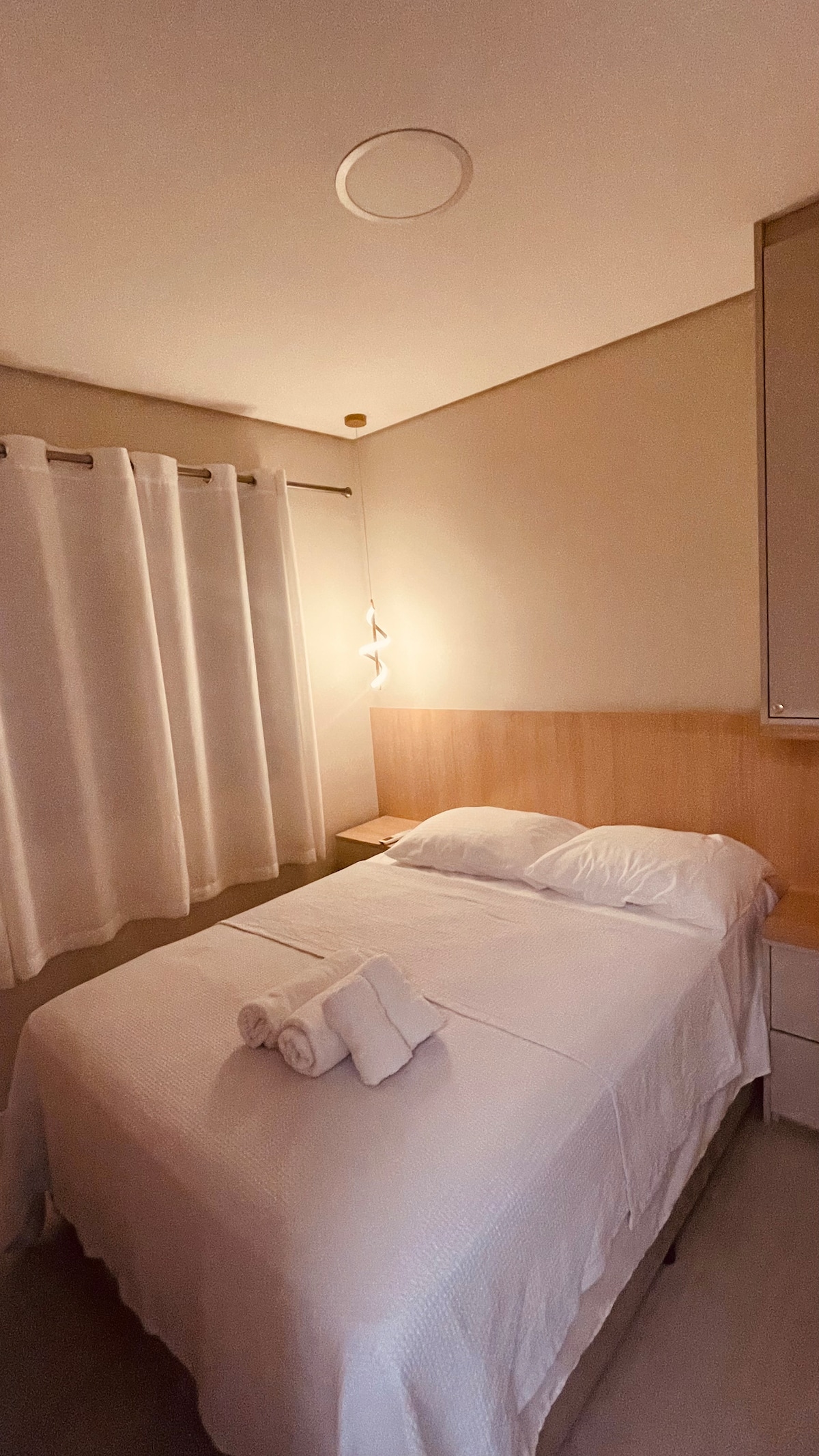 Studio com sacada no 10° andar. Com piscina, com vaga de garagem demarcada coberta dentro do prédio ( raridade na região ) Smart tv Samsung cristal 4k com 400 mega de internet, com Netflix liberada, Colchao Emma Hybrid premium, Cortina Blackout, Ar condicionado, filtro de água natural, microondas, geladeira, cooktop, cafeteira tradicional e nexpresso, secador de cabelos profissional e ferro de passar. Obs.. de 14/01 a 19/01 e 20/01 vaga de garagem disponível para carros pequenos e médios
