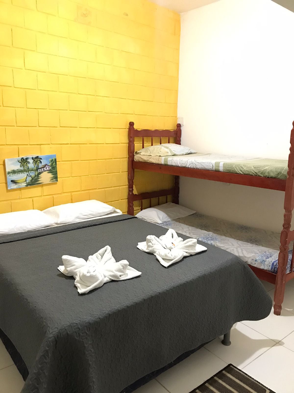 Quarto com cama de casal e treliche, ideal para famílias com até 6 pessoas (acomoda colchão no chão). Não aceitamos pet