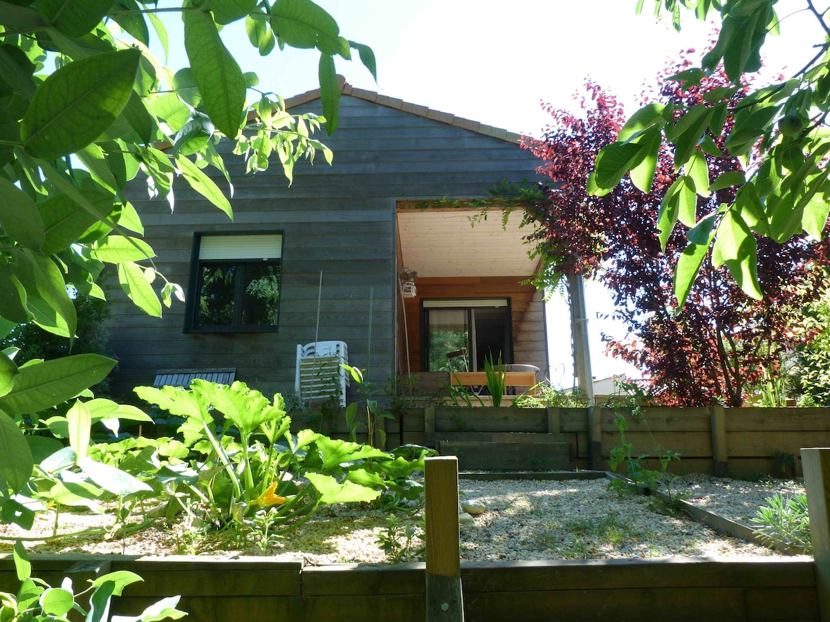 Maison ossature bois récente, 60 m2, décorée avec goût, classée 3 étoiles par l'Office du Tourisme de Vendée Séjour 40m2 plein sud avec cuisine US. Ch. 1 de 11m2 avec lit 160. Ch. 2 avec lit 80. SDB avec douche à l'italienne. Wifi. TV. Lave linge. Lave-vaisselle. Terrasse couverte très jolie vue sur forêt. Centre bourg 5min, plage 10min à pied. Calme.