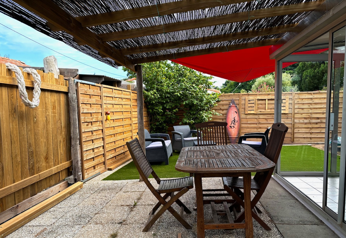 Ce logement paisible offre un séjour détente pour toute la famille ou entre amis. Charmante maisonette de 40m2 idéalement située à 50m de la plage surveillée de Boisvinet, accès à la plage par chemin piétonnier. A 10mn à pieds du port et des commerces Forêt domaniale à 100 mètres, idéal pour les amoureux de la nature et ballades côtières. Parking privé sécurisé Terrasse de 28 m2 entourée de haie avec salon de jardin Spot de planche à voile à proximité, et activités nautiques au port