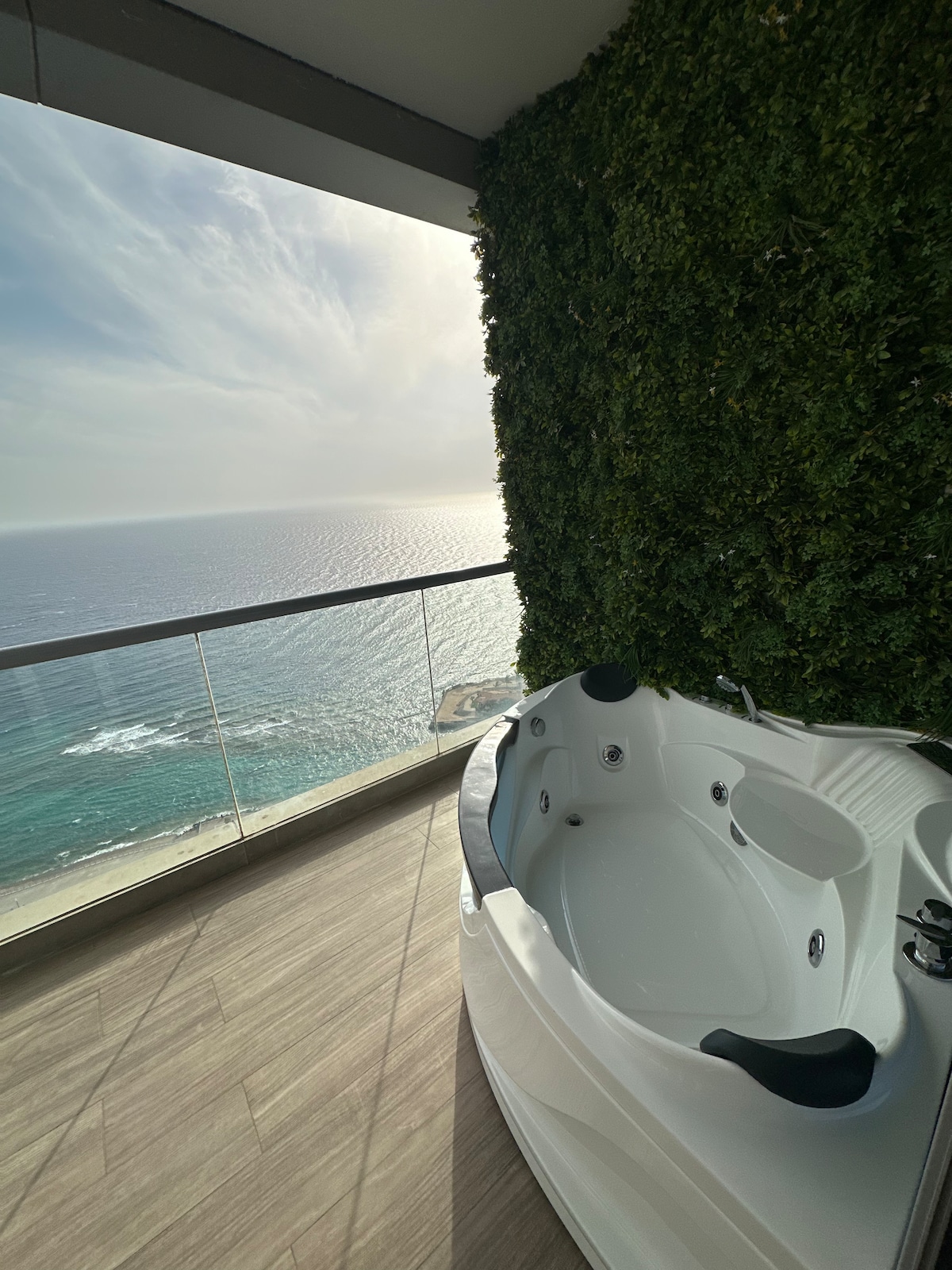 Η πολυτελής Σουίτα Moon στον πύργο DAMAC στην Τζέντα με ανοιχτό σχέδιο σοφίτας και σπάνια πανοραμική θέα στη θάλασσα και την πόλη από δύο γωνίες. Βρίσκεται στις καλύτερες περιοχές της Τζέντα και ακριβώς στην καρδιά της βόρειας Τζέντα Κορνίς, διαθέτει ένα μοναδικό τζακούζι καταρράκτη με πολλά φώτα και εξόδους νερού και ένα μασάζ πλάτης, με άμεση θέα στη θάλασσα. Απολαύστε μια ρομαντική συνεδρία στην κούνια που κρέμεται στο ευρύχωρο μπαλκόνι. Η σουίτα διαθέτει ευρύχωρο μπαλκόνι, έξυπνες οθόνες, πλήρως εξοπλισμένη κουζίνα, πλυντήριο ρούχων, ίντερνετ 5G, check-in χωρίς παρουσία οικοδεσπότη και υπηρεσία συντονισμού εκδηλώσεων... για μια αξέχαστη εμπειρία!