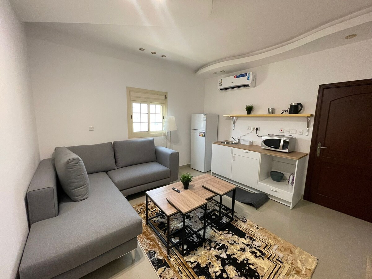 Καλωσορίσατε στο κομψό στούντιο μας στο Νότιο Ούμπουρ της Τζέντα! Ιδανικό για ζευγάρια ή μεμονωμένους ταξιδιώτες, απολαύστε μια άνετη διαμονή με υπέρδιπλο κρεβάτι, έξυπνη τηλεόραση και εξοπλισμένη μικρή κουζίνα. Το κομψό μπάνιο διαθέτει ντους και προϊόντα περιποίησης. Μείνετε συνδεδεμένοι με Wi-Fi και χαλαρώστε με την άνεση του κλιματισμού. Λίγα μόλις βήματα από τοπικά αξιοθέατα, καταστήματα και εστιατόρια, το στούντιο μας είναι ιδανικό για να εξερευνήσετε τον πλούσιο πολιτισμό της Τζέντα. Ζήστε μια αξέχαστη διαμονή σε αυτήν τη μαγευτική πόλη!