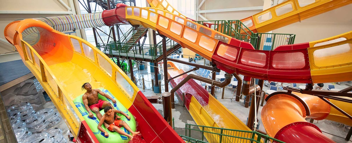 On this perfect Smoky Mountain getaway, you can take in the natural splendor on a scenic hike, bike ride, or horseback ride and enjoy convenient access to local attractions. The on-site waterpark features: indoor/outdoor pools and slides, a video game arcade, miniature golf, laser tag, a ropes course, duck-pin bowling, restaurants and bars, a candy store, a yogurt bar, and even ceramic painting. Plus, you'll be next to an 18-hole golf course and minutes away from Pigeon Forge and Gatlinburg.