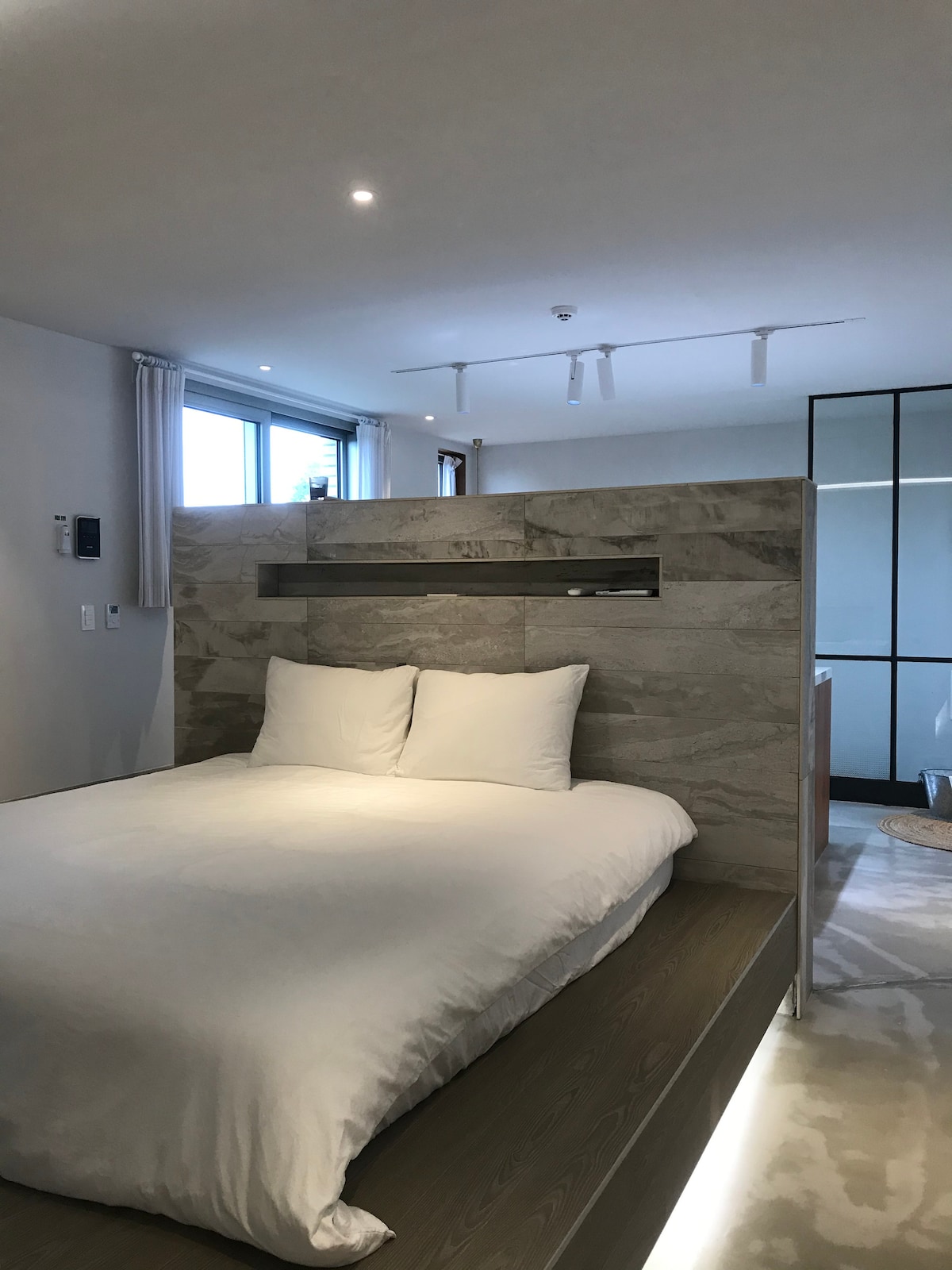 Αυτή είναι η "Hallim Soak Day". Σας ευχαριστούμε για το ενδιαφέρον σας για το "Modl". ;) * Διοργανώνουμε μια ασπρόμαυρη εκδήλωση φωτογραφίας. Επικοινωνήστε μαζί μας αν έχετε απορίες. ^ ^ Στο Hallim, υπάρχουν τα "Modl" και "Dasom". ^^ Αν ανοίξετε την μπροστινή πόρτα και μπείτε, στο σαλόνι, Υπάρχει φωτισμός σε στιλ στούντιο, τηλεόραση και καναπές. Υπάρχει ένα μικρό τραπέζι μπαρ στο παράθυρο μπροστά από το σαλόνι, οπότε Μπορείτε να απολαύσετε τσάι ή σνακ ενώ κοιτάτε το τοπίο. Φυσικά, είναι ιδανικό για ένα ποτήρι κρασί. Ένας φούρνος μικροκυμάτων και μια κατσαρόλα είναι έτοιμα. Μπροστά από τον χώρο του υπνοδωματίου, υπάρχει ένα τραπέζι από μασίφ ξύλο για 4-6 άτομα. Μπορείτε επίσης να απολαύσετε σνακ ενώ καταγράφετε την ημέρα σας σε αυτόν τον χώρο. Είναι ένα μεγάλο τραπέζι όπου μπορείτε να οργανώσετε ή να σχεδιάσετε το πρόγραμμά σας. Το σαλόνι είναι διαμορφωμένο με φωτισμό στούντιο, ώστε να μπορείτε να χαλαρώσετε άνετα. Το υπνοδωμάτιο βρίσκεται κάτω από άνετο φωτισμό με ένα μεγάλο κρεβάτι queen size και ένα χαριτωμένο μπουντουάρ.